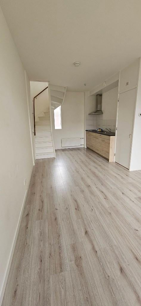de lichte en gezellige woonkamer beschikt over een moderne open keuken, compleet uitgerust met een 4-pits keramische kookplaat, afzuigkap, gootsteen en volop kastruimte voor al je keukenspullen. via de trap bereik je de eerste etage, waar zich de comfortabele slaapkamer en de strak afgewerkte badkamer bevinden. de badkamer is voorzien van een zwevend toilet, een afsluitbare douche, een wastafel en een radiator. de gehele woning is afgewerkt met een lichte laminaatvloer, wat zorgt voor een frisse en moderne uitstraling.