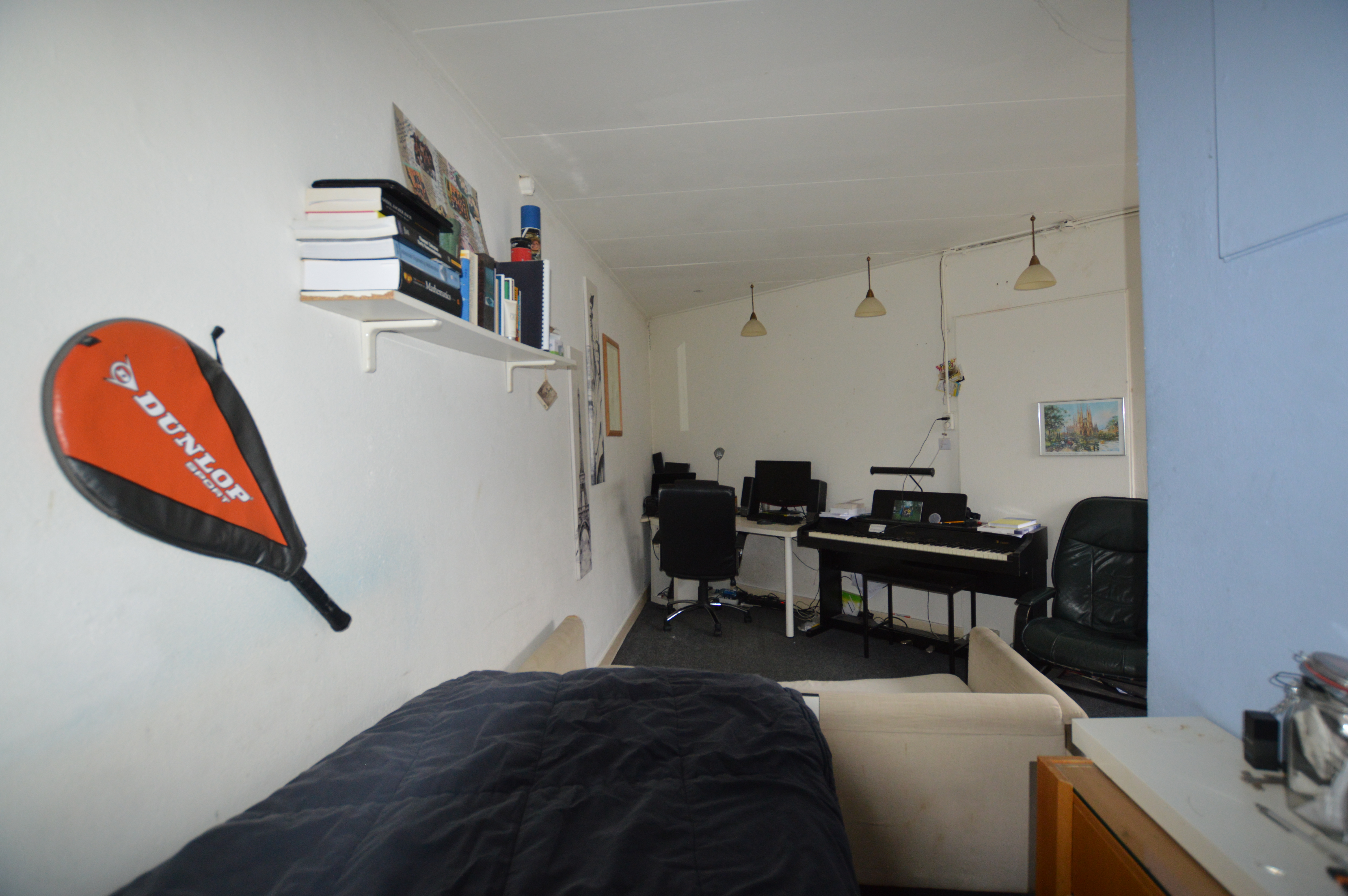 De woonruimte is gelegen op de eerste etage aan de linkerzijde van het pand met uitzicht op de tuin.