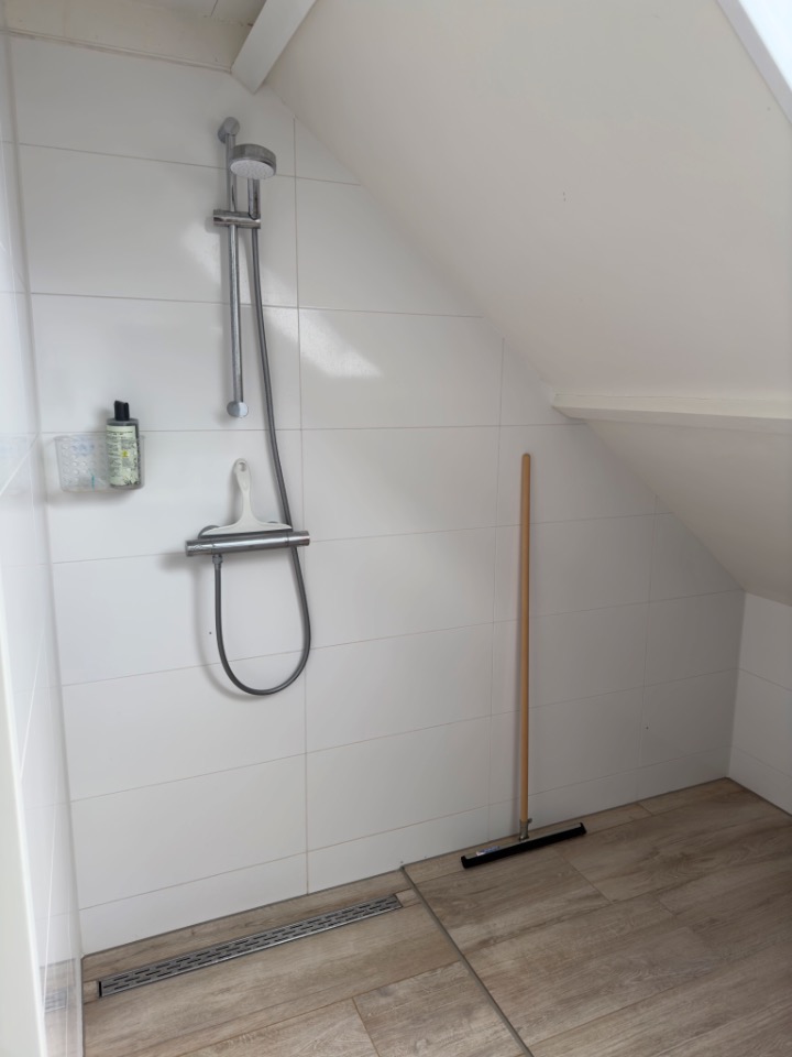 Het appartement heeft een eigen doucheruimte (4m2) met wastafel, spiegel en veluxraam. Er is een eigen eigen toiletruimte (4m2) waar ook de wasmachine en wasdroger staan. Wederom met veluxraam. Het gebruik van de wasmachine en droger is gedeeld met de huiseigenaar.