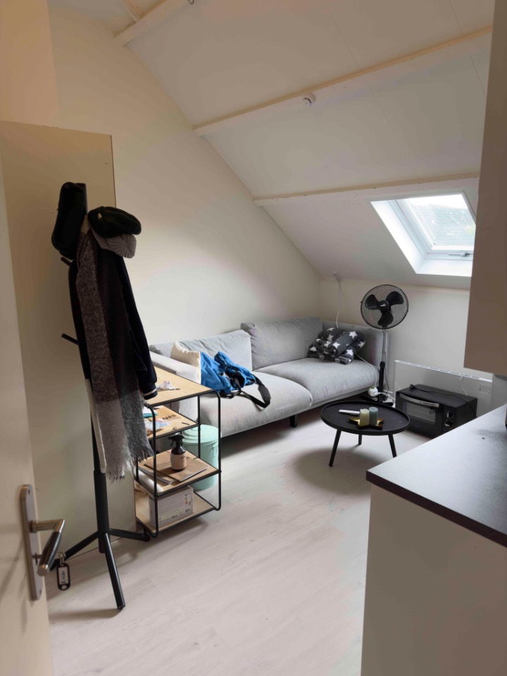 Er is zeer dikke dakisolatie aangebracht en dubbele beglazing. Het betreft een woon/slaapkamer van 24m2 met keuken. De keuken is een nieuwe luxe keuken van 2,25 m breed (vaatwasser, koelkast, elektrische kookplaat, magnetron, recirculatie afzuigkap, gootsteen, twee onderkasten, vier bovenkastjes). De kamer heeft twee veluxramen en is aangesloten op een centraal ventilatiesysteem.