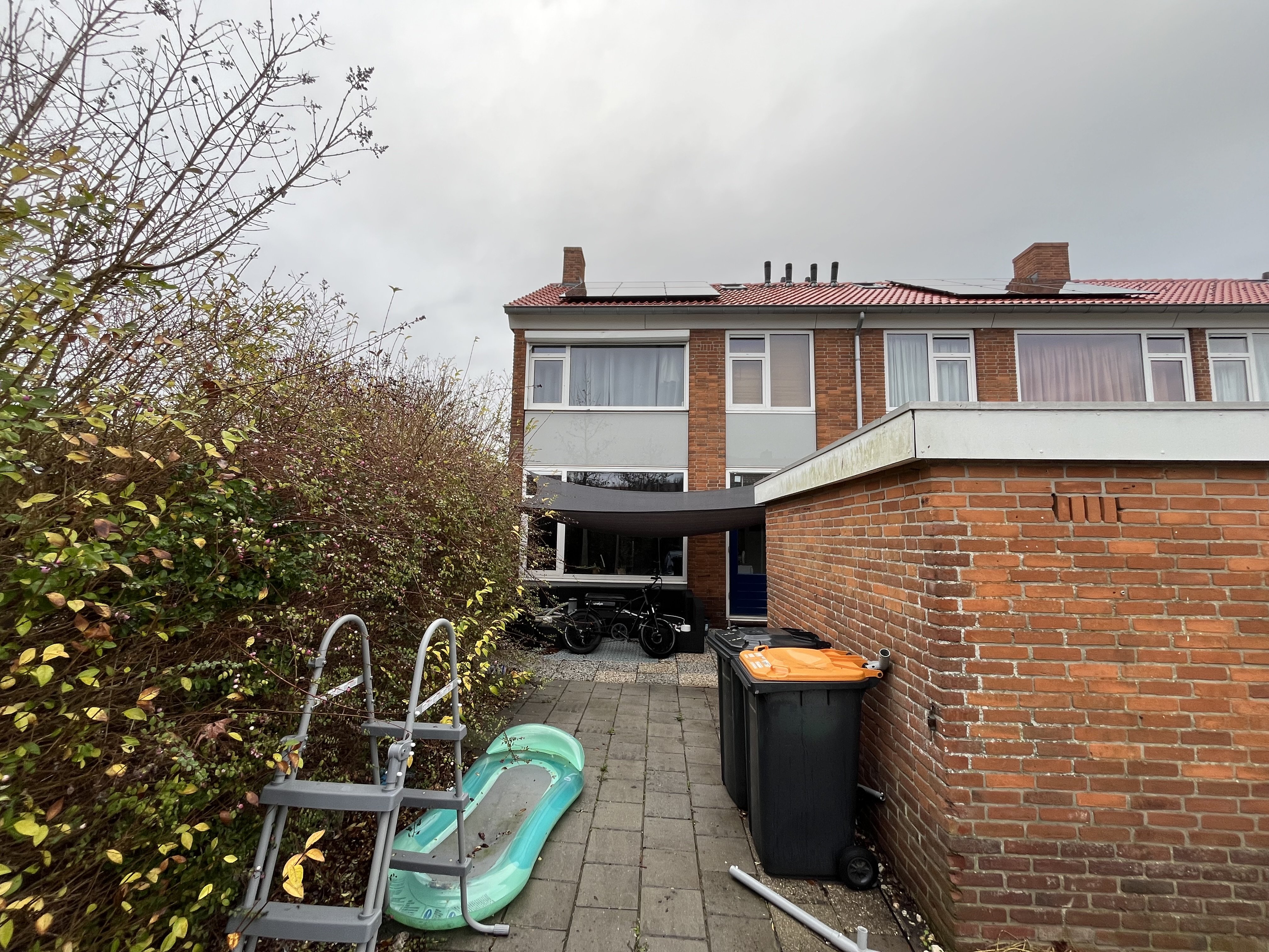 De grote achtertuin ligt op het zuid oosten. De woning is voorzien van zonnepanelen.Rondom de woning zijn voldoende parkeerplaatsen. Hiervoor heeft u een parkeervergunning van de gemeente nodig. Dit is een blauwe zone, met een parkeerschijf, kunt u hier ook kort parkerenDe huidige huurder biedt een aantal zaken ter overname aan.