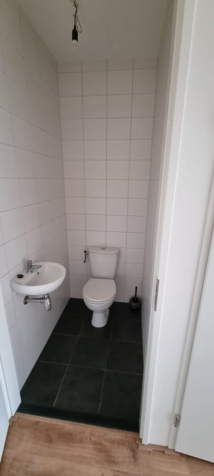 De badkamer is voorzien van douche en wastafel. Er is een apart toilet. De woning beschikt over 1 slaapkamer.