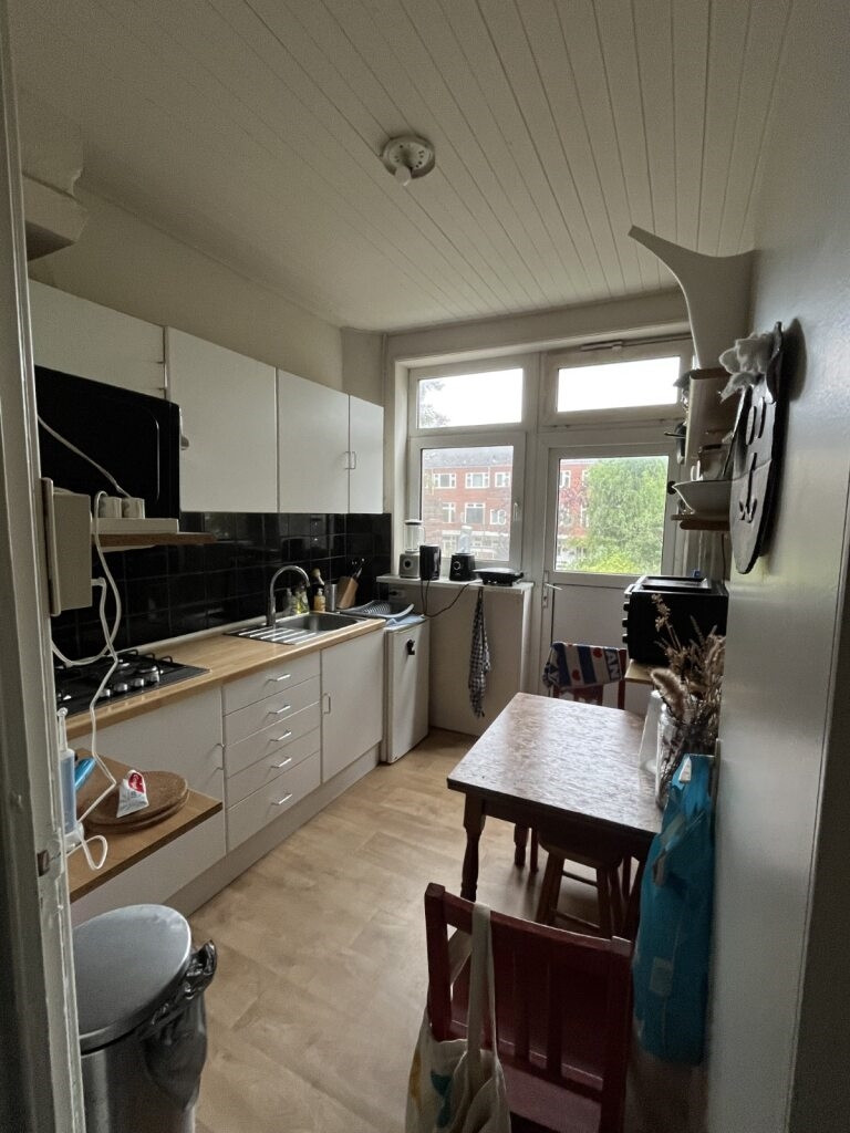 De woning is goed bereikbaar met het openbaar vervoer. Indeling Bij binnenkomst in de woning kom je eerst in de hal, die toegang geeft tot de gemeenschappelijke ruimtes. De woning heeft een gemeenschappelijke keuken die van alle gemakken is voorzien. De woning beschikt verder over een gezamenlijk toilet en een badkamer.