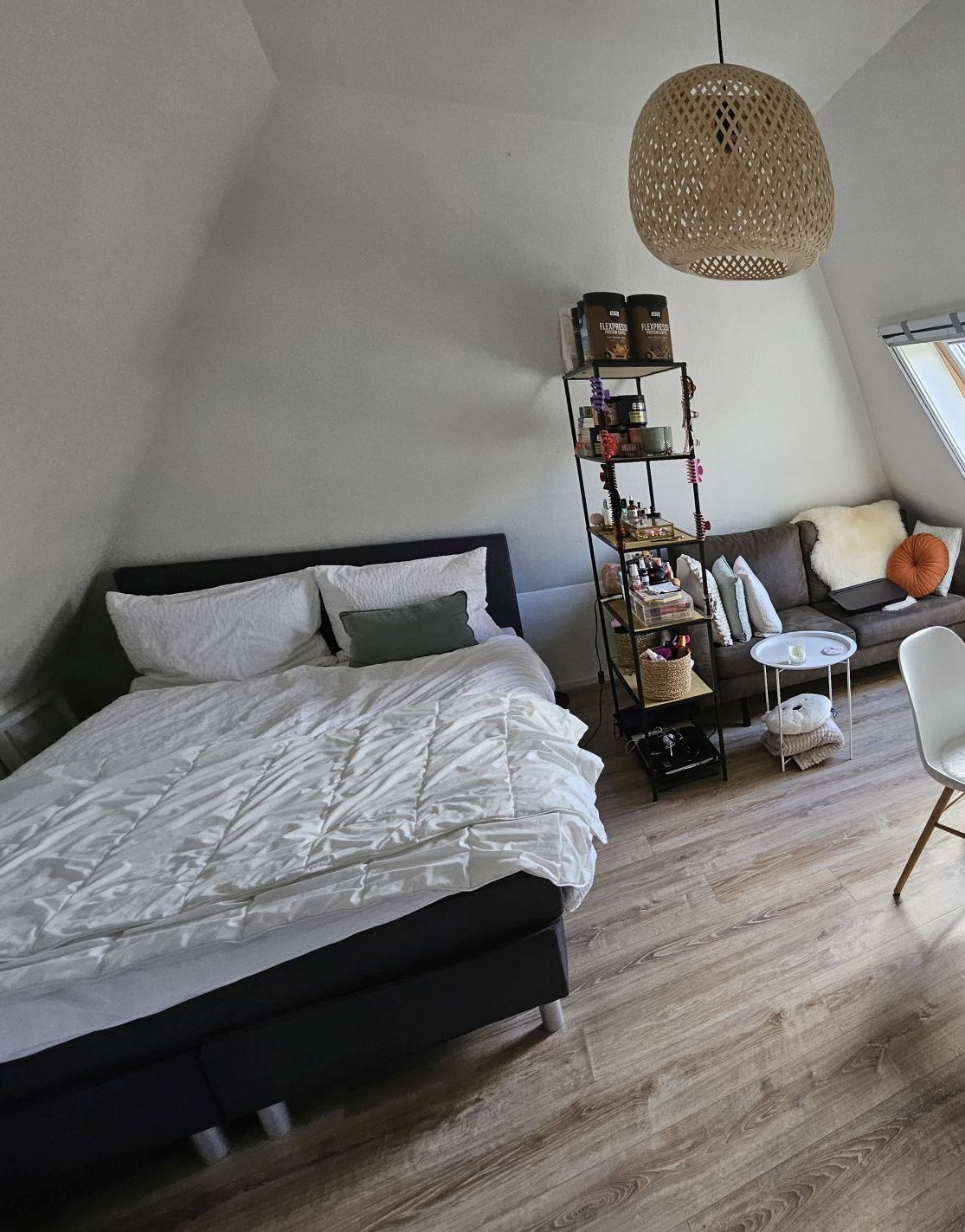 Bestaat uit een woonkamer met open keuken en een slaapkamer met badkamer. Huur is inclusief energiekosten, internet en laminaatvloer. Op het adres wordt nog een andere studio en een kantoorruimte verhuurd. Toilet, wasmachine en buitenterras is gedeeld.