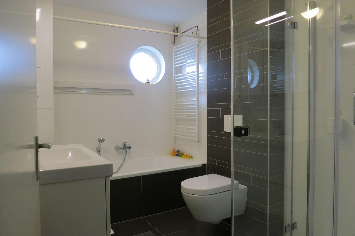 - Volledig ingerichte keuken met servies en pannen, magnetron, bakoven, afwasmachine en koel/vries-combinatie