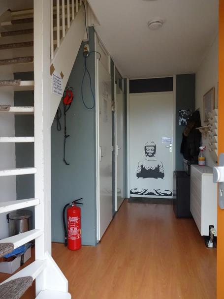Voorzieningen zoals de keuken, badkamer, toilet, wasruimte en berging worden gedeeld met 5 medebewoners.