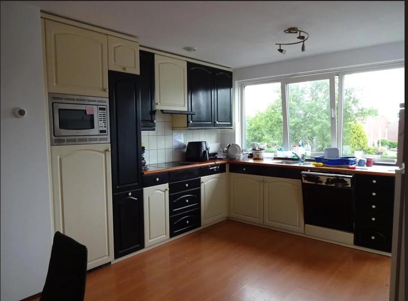 De woning heeft op dezelfde verdieping een ruime open keuken met aangrenzend de gemeenschappelijke ruimte. De keuken heeft de volgende inbouwapparatuur: oven, koelkast, gasfornuis en afzuigkap.