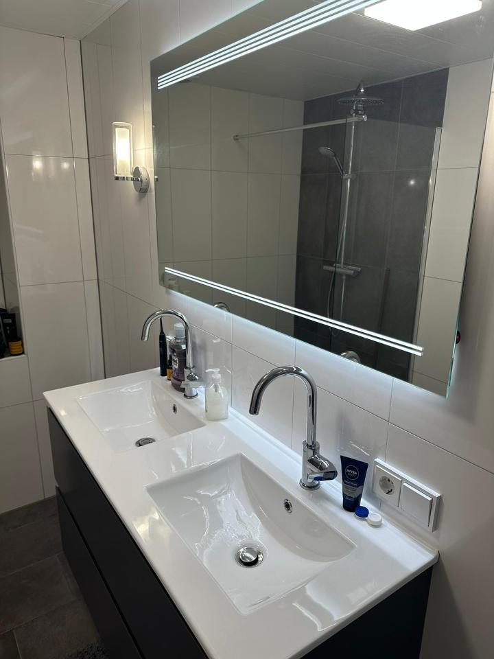 De gehele begaande grond bestaat uit een grote gedeelde woonkamer (met een tv, vaatwasser, airconditioning, etc.) en open keuken (2 ijskasten, vriezer, afwasmachine, magnetron en oven). Ook hebben we een gedeelde badkamer (met een regendouche), een ruime tuin (met een garage om je fiets te parkeren) en een keuken.