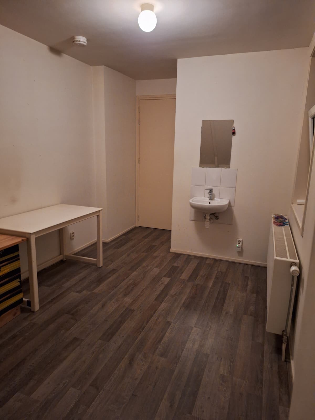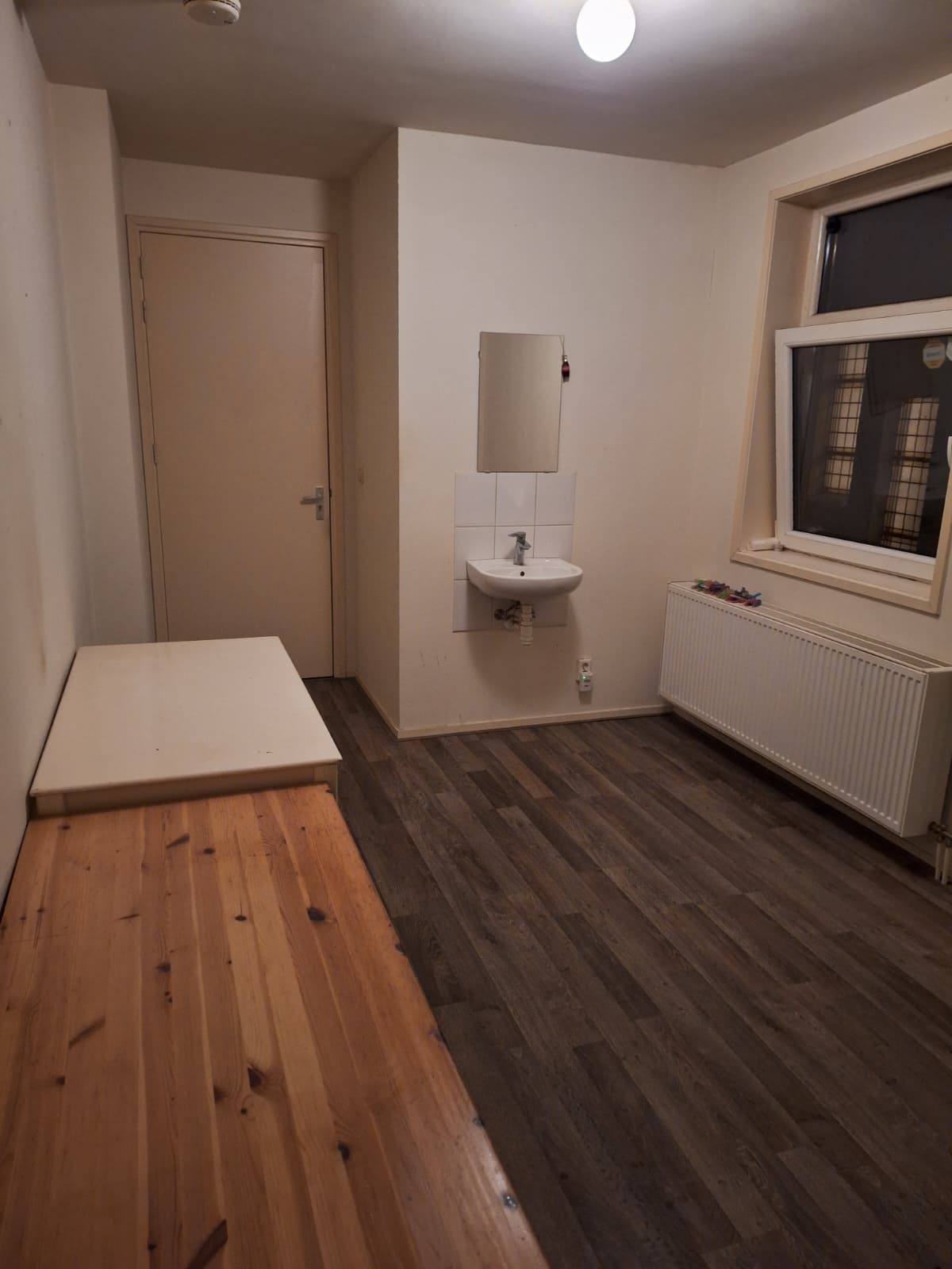 De kamer zit boven, naast de badkamer en heeft daarnaast ook een eigen wastafel. Het raam kan helemaal open (fijn op warme dagen).