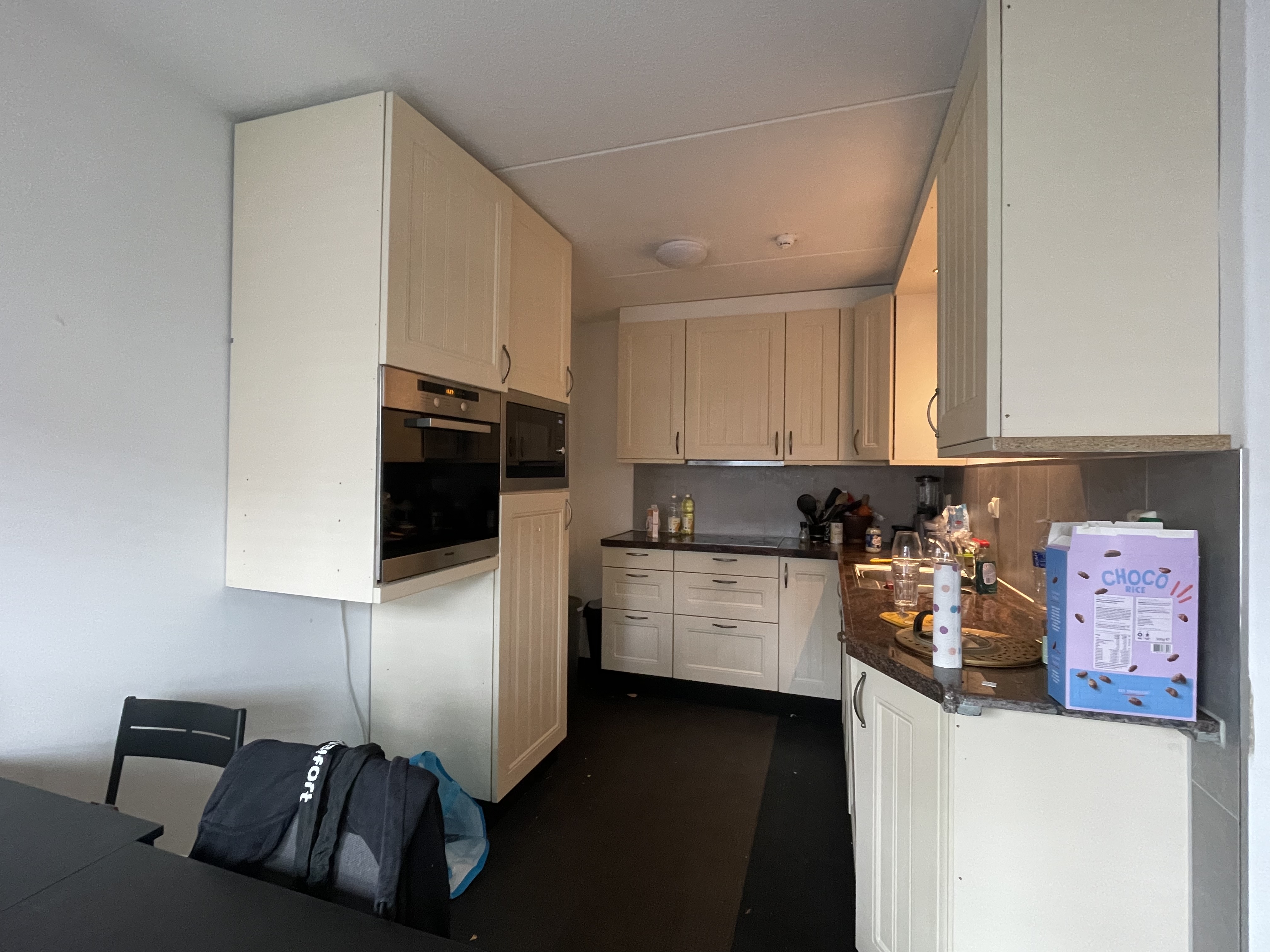De gezamenlijke keuken bevindt zich op de begane grond en is voorzien van een afzuigkap, inductiekookplaat, koelkast met vriesvak, oven, magnetron en vaatwasser. De badkamer op de eerste etage is voorzien van 2 douchecabines met slot, zwevend toilet en wastafel. Op de eerste etage staan ook de wasmachine en droger. De woning beschikt over een fietsenberging welke je deelt met de 4 andere huisgenoten.