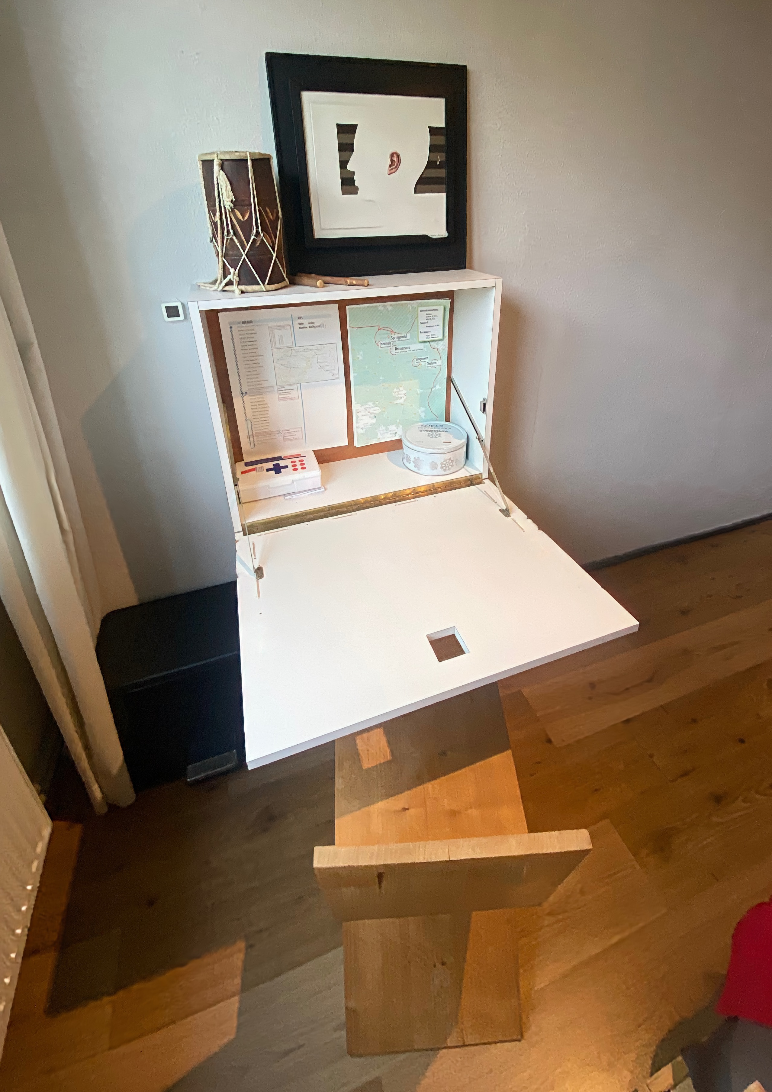 In de kamer kan zowel geslapen als gewerkt worden. Er is een uitklapbaar werkblad met voldoende ruimte voor een computer en schrijfmateriaal. Op verzoek kan er wireless geprint of gescand worden met de WF-7620, een A3 all-in-one printer die beneden staat.