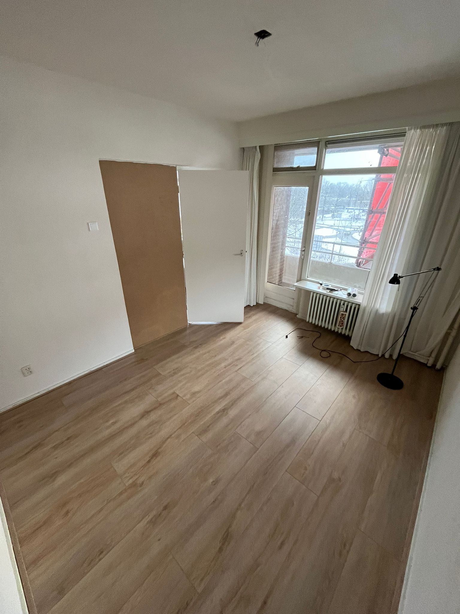 de kamer heeft enorm mooi uitzicht en veel ramen. je zit dan ook aan het balkon dus dat is super fijn! we gaan hem nog voor je witten zodat je het alleen nog maar hoeft in te richten waar we je ook graag mee helpen.