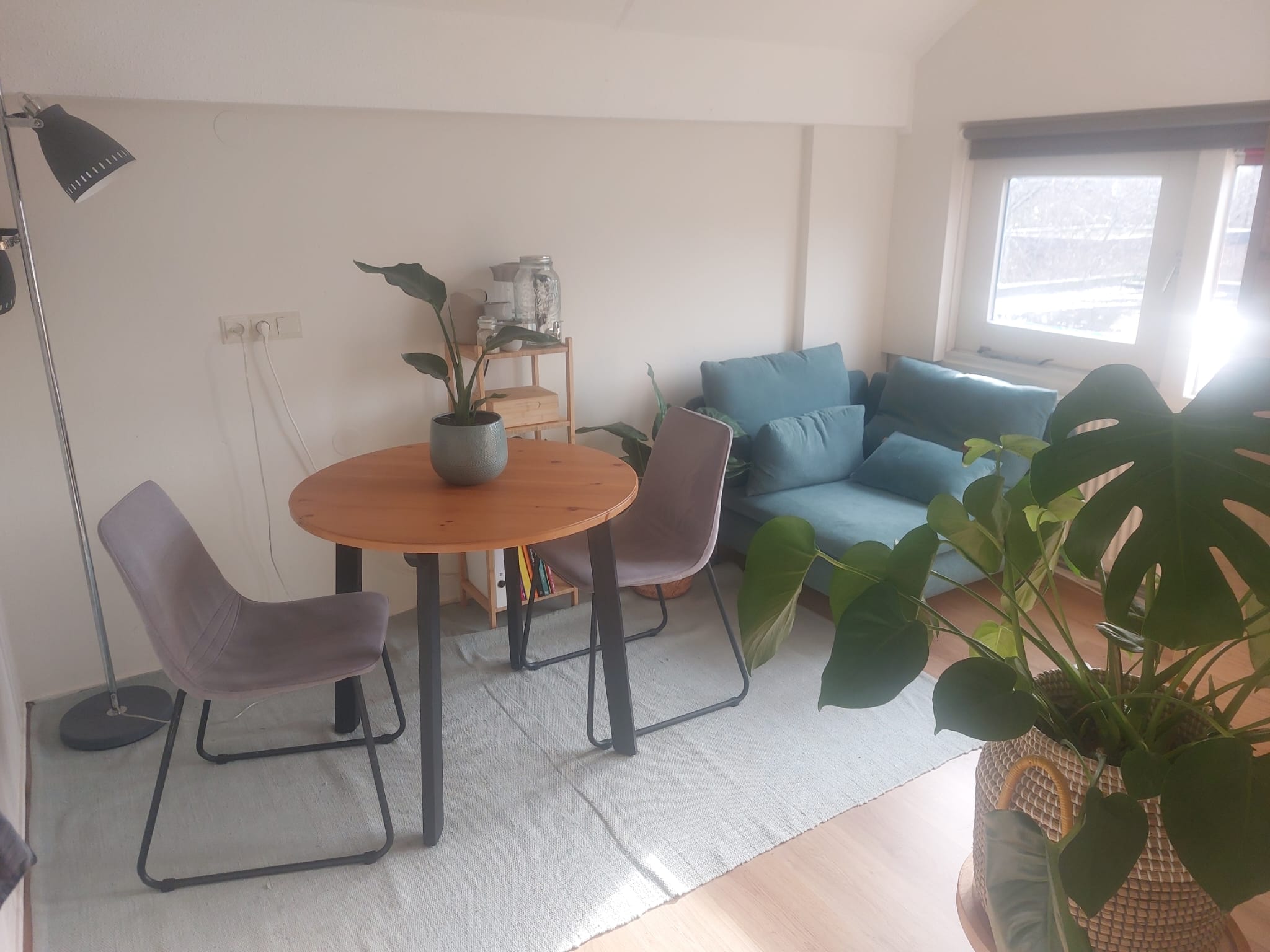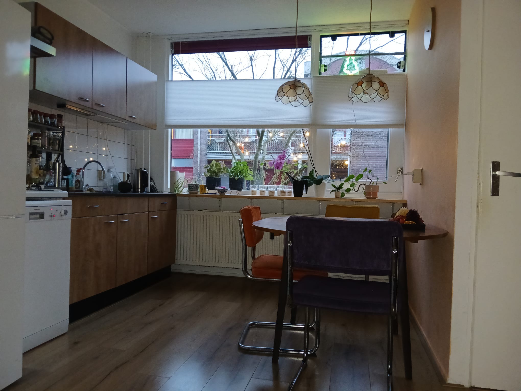 In een gezamenlijke woning van drie personen, komen twee kamers vrij van 15m2, beiden op de bovenverdieping, waar ook het toilet en de badkamer gevestigd zijn. Beneden is de gedeelde woonkeuken. Er is een tuin met in de schuur gezamenlijke wasmachines.