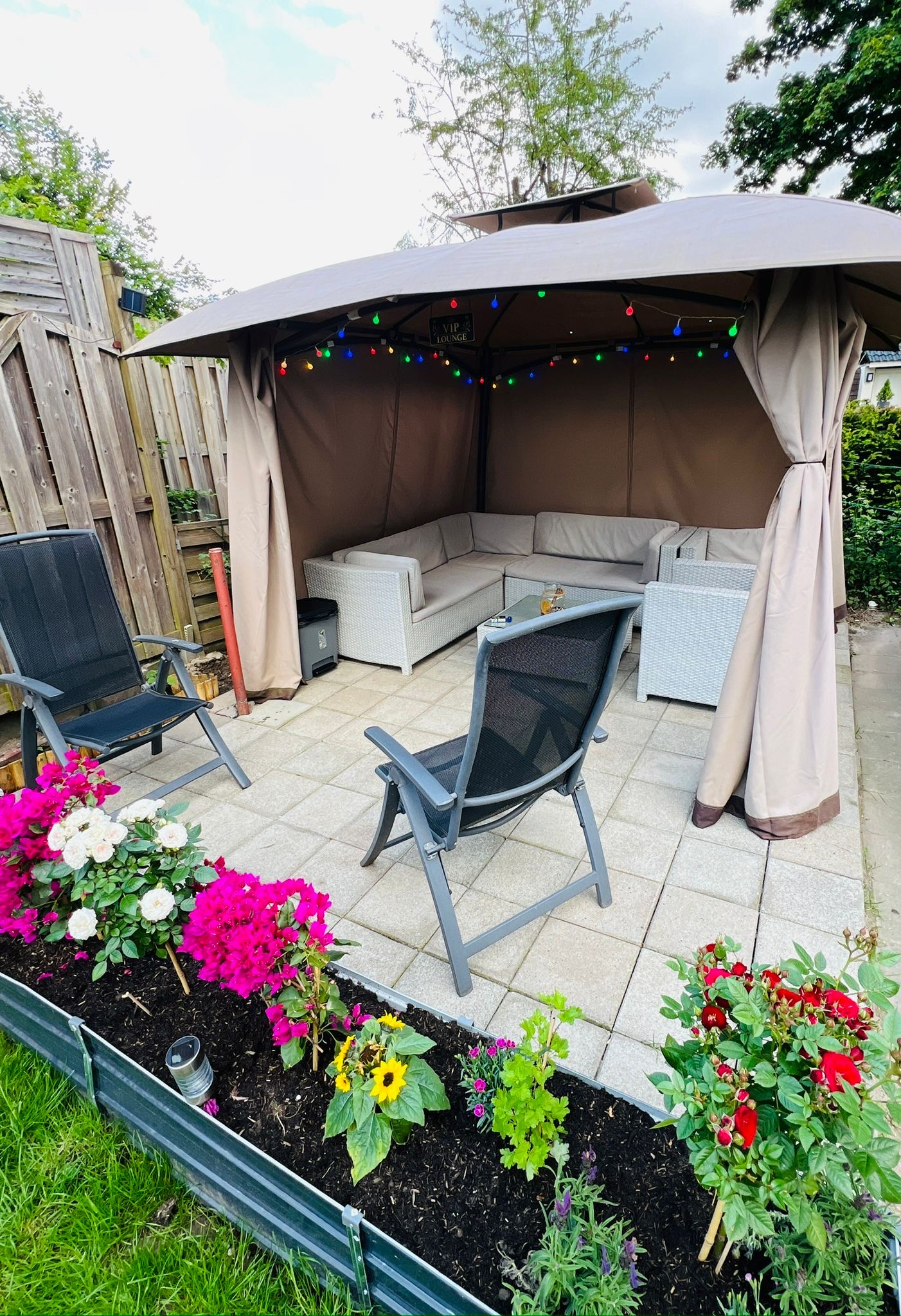 The room is in a house with a garden, consisting of 3 bedrooms, living room, kitchen, bathroom and hallway