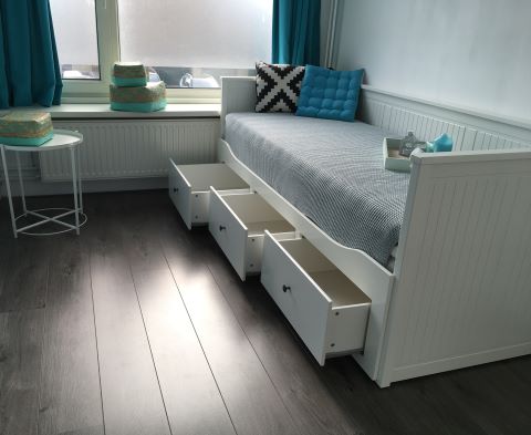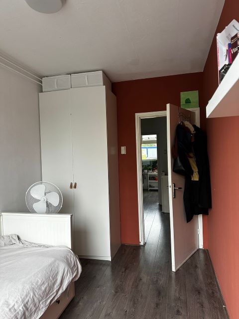 Gemeubileerde kamer € 630,00 incl. G/W/L, op eerste verdieping. Bed, bureau, hang/leg kast IKEA PAX, nieuw handdoek-set