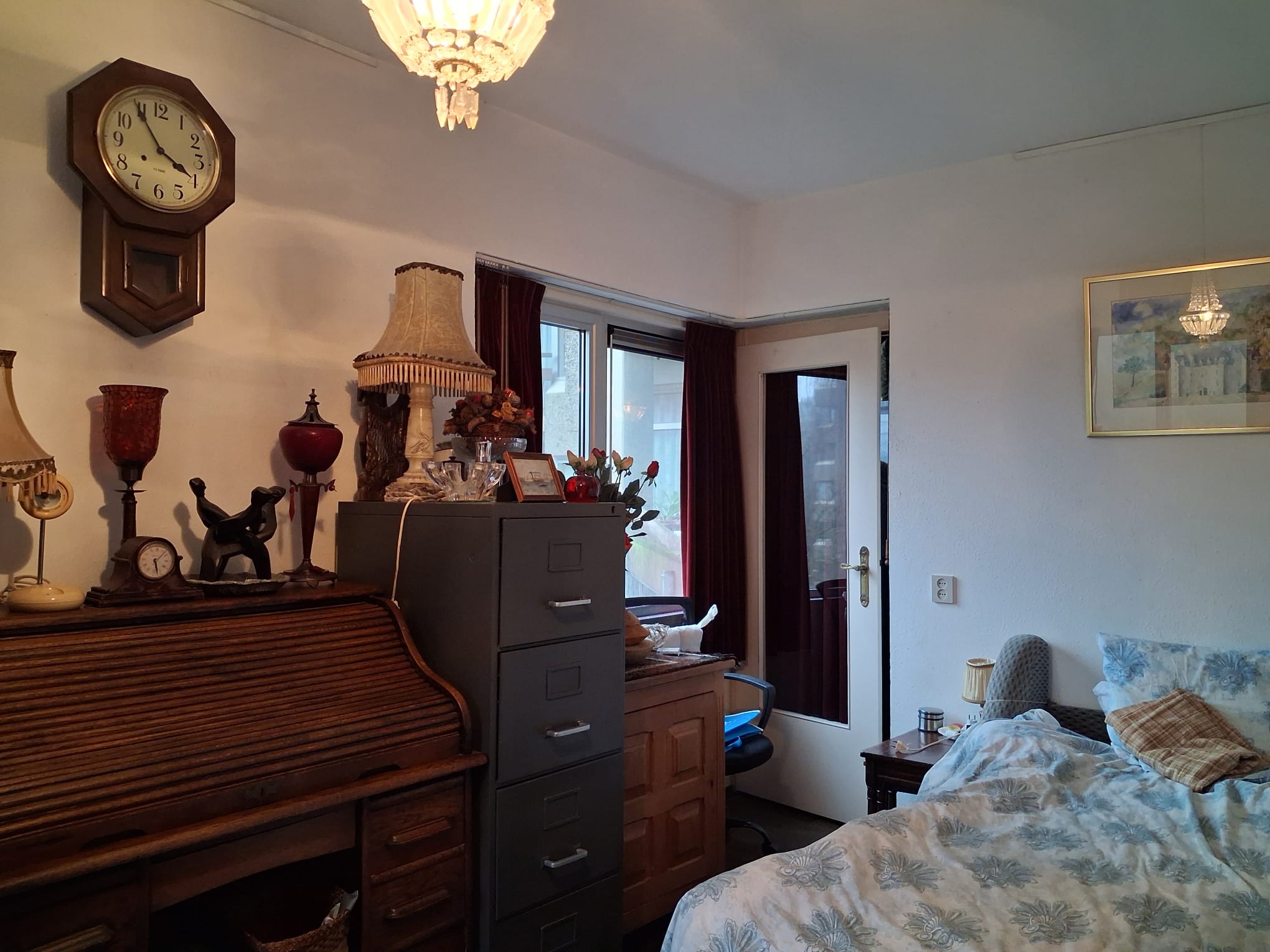 De kamer is licht en ruimtelijk.