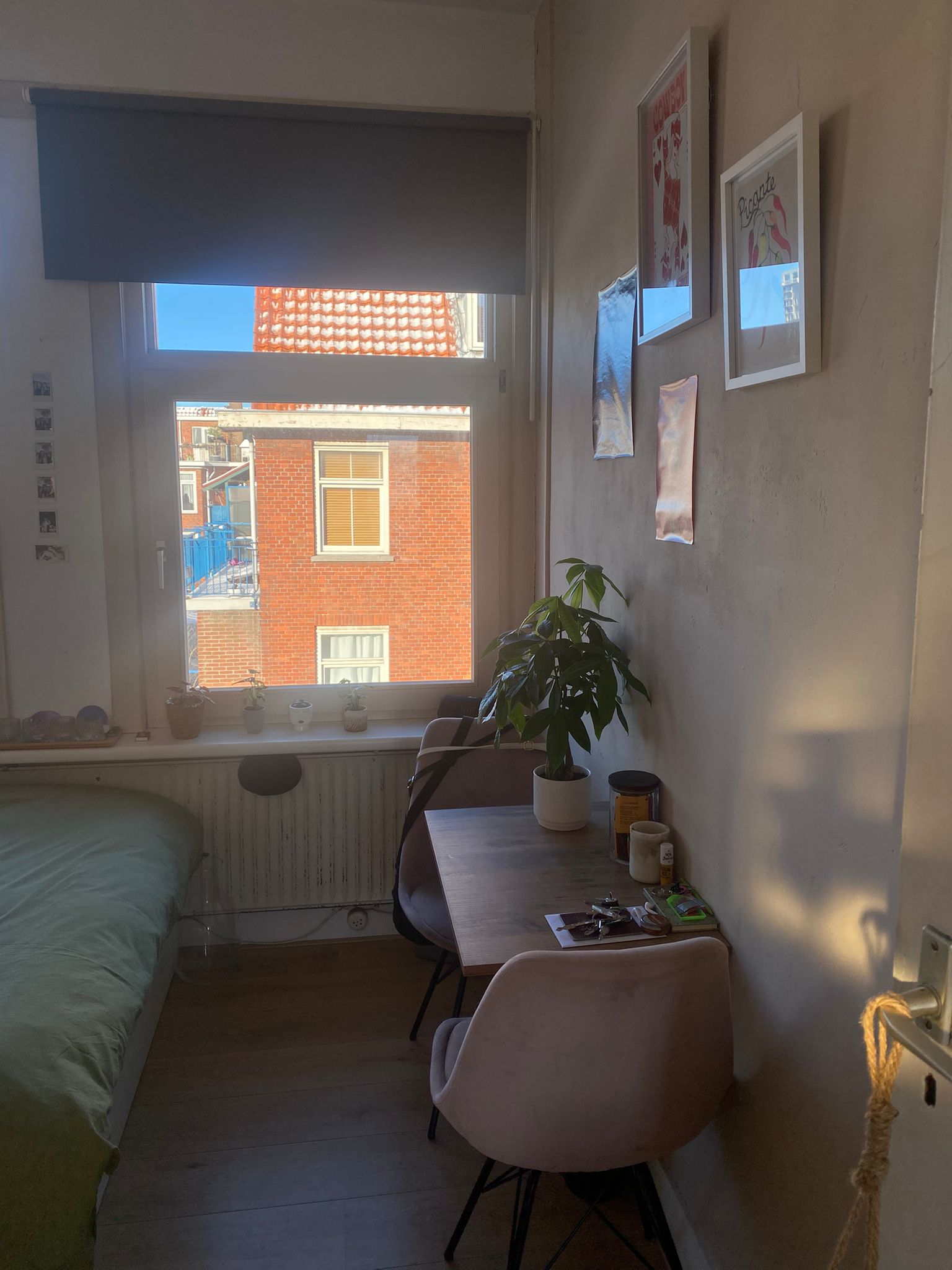 We zijn een studerend (Master) /werkend huis en drinken graag een koffietje of theetje met elkaar op het balkon en of koken samen, maar we hebben ook allemaal ons eigen drukke leven. We hebben een gedeelde keuken, badkamer, balkon met zon, chillkamer en eetkamer.