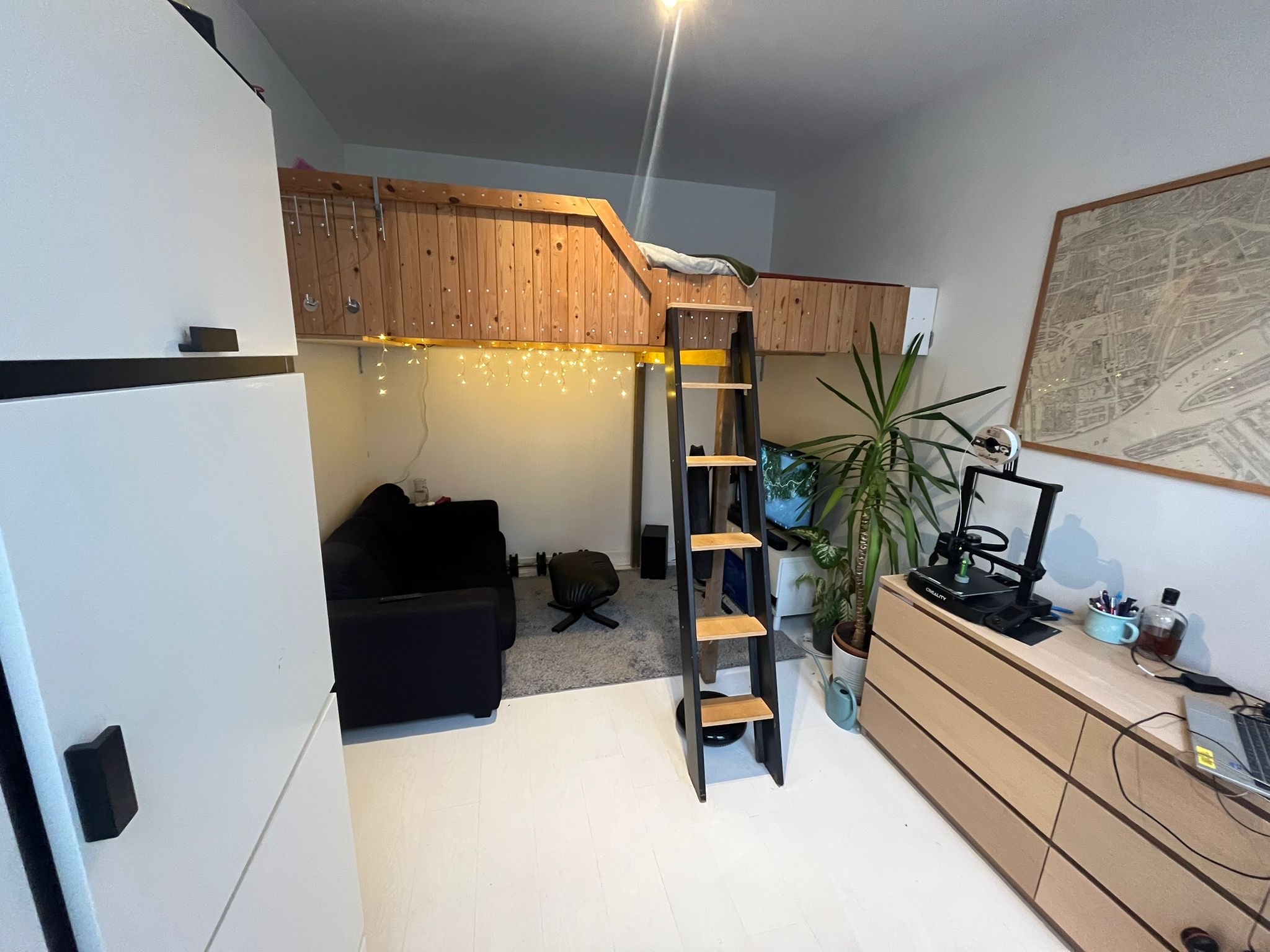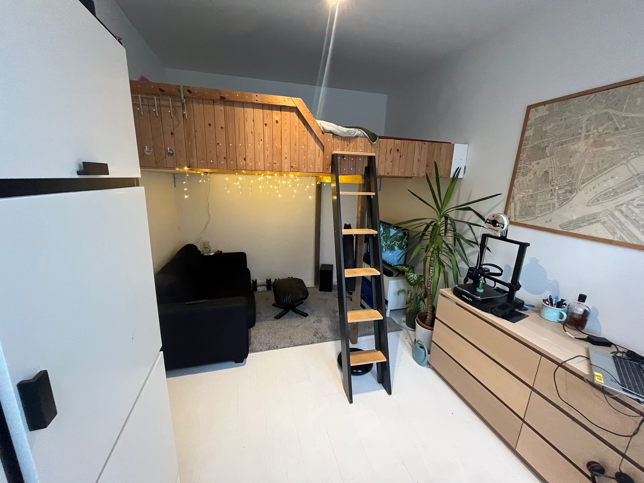 De hoogslaper in de kamer kun je overnemen (ideaal, want dan heb je veel ruimte!).