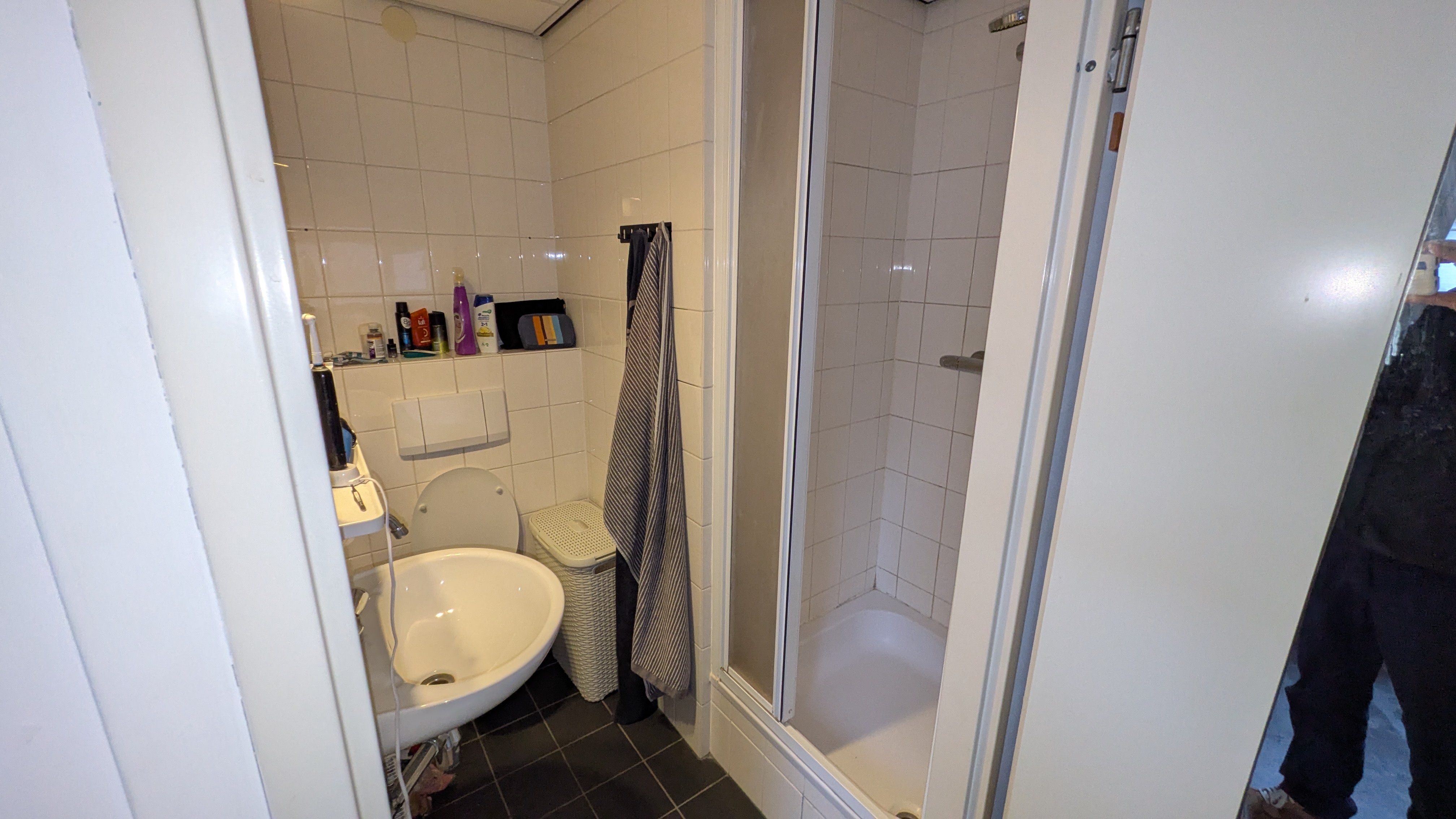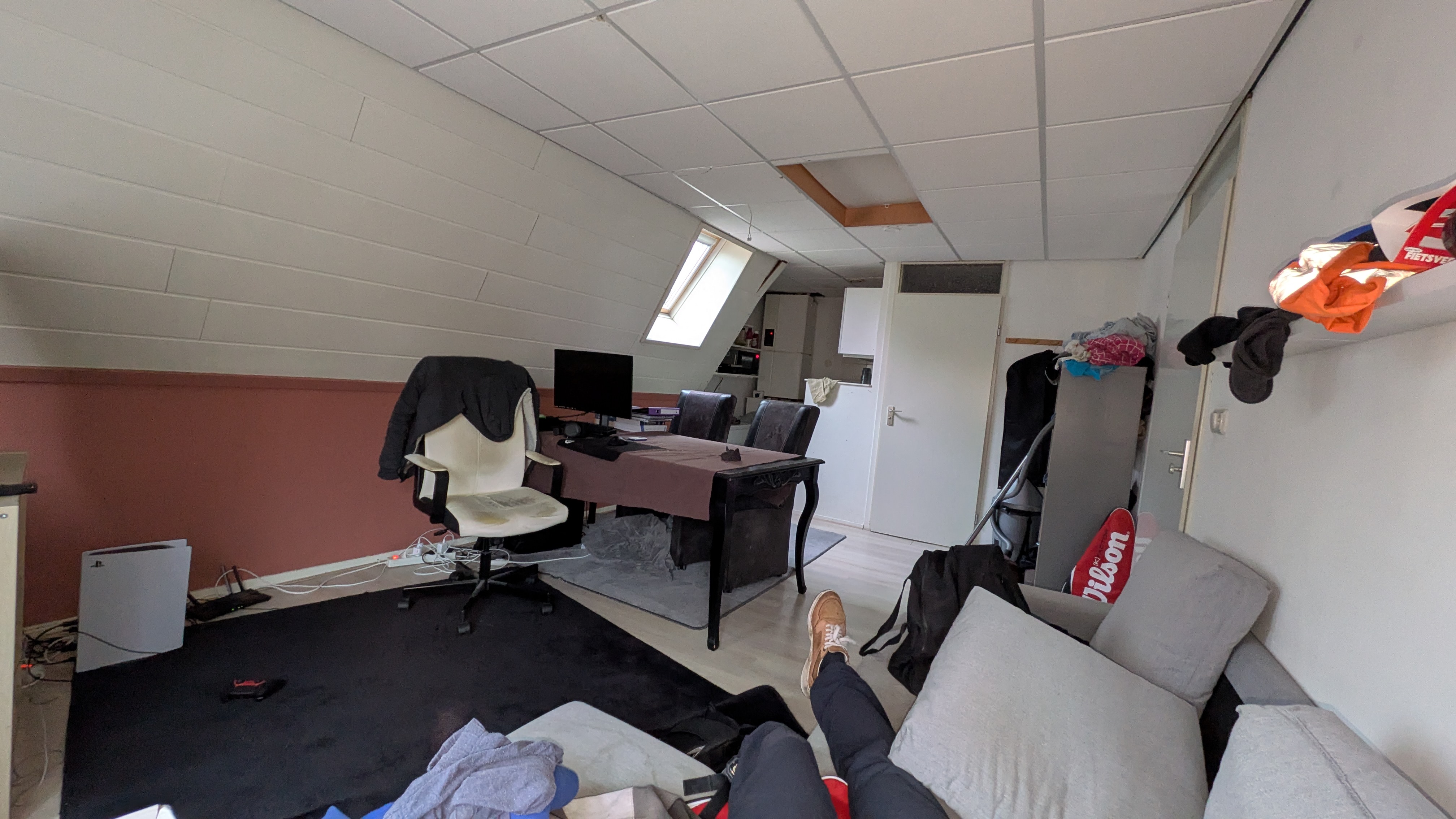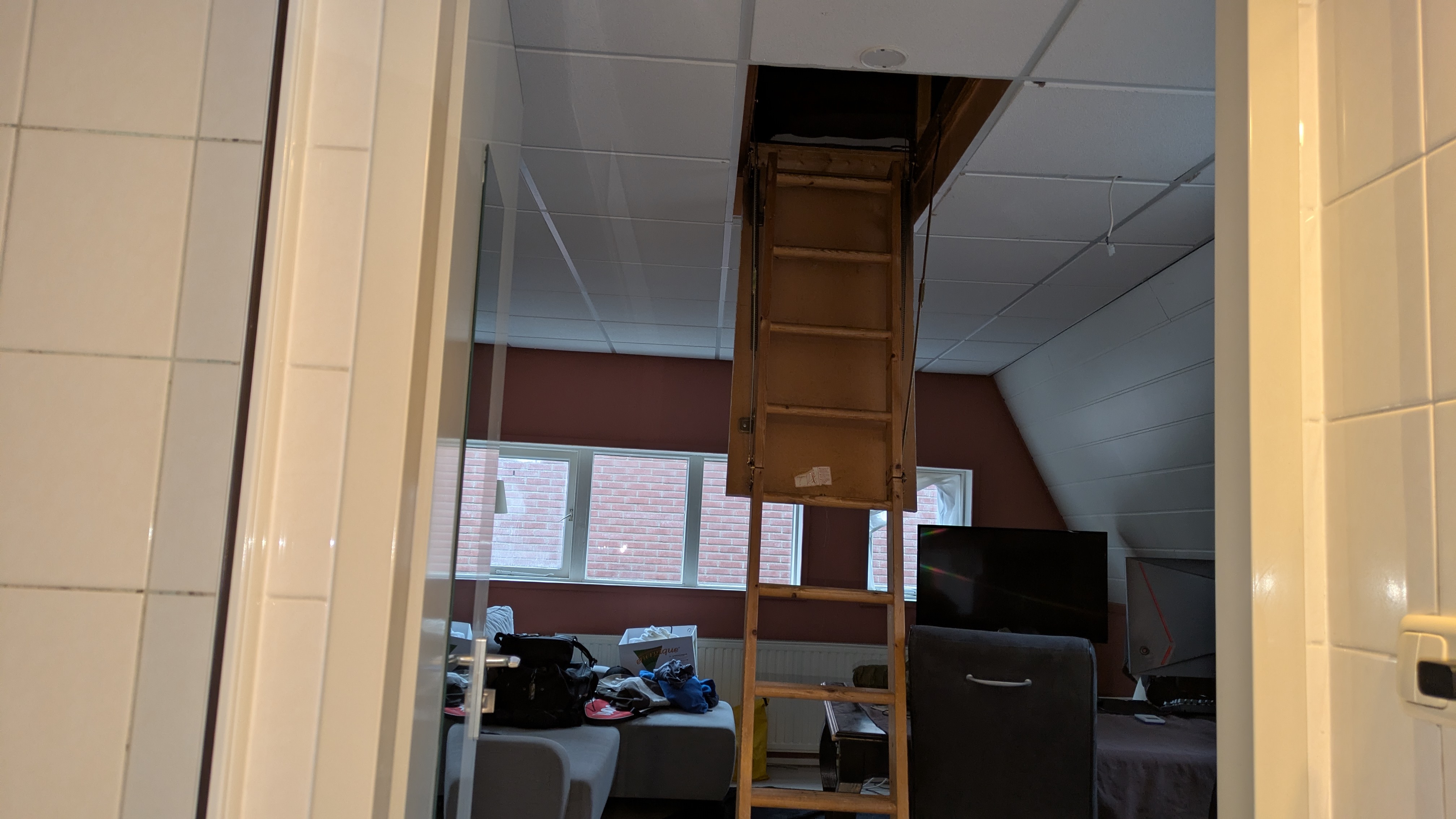 een studio vrij. Het betreft een kamer met openkeuken en een badkamer. Vanuit de kamer is de bovenruimte toegankelijk via een vlizotrap. De ruime zolder wordt .