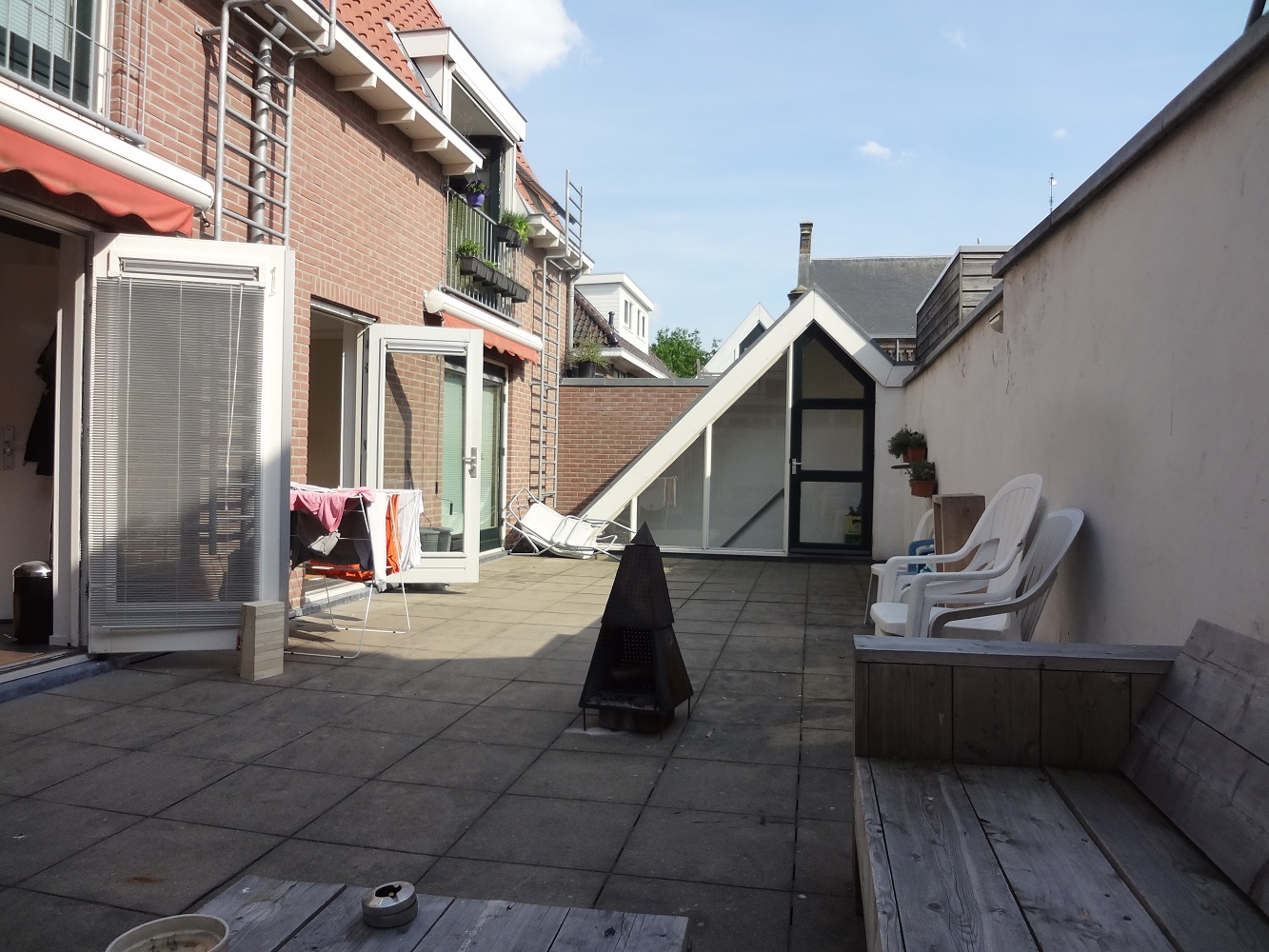 De gemeenschappelijke voorzieningen zijn een grote zonnige buitenruimte, een inpandige fietsenstalling, wasmachine + droger en internet. Maandlasten Inclusief service kosten € 775.-. Adres: Spoelstraat 39.