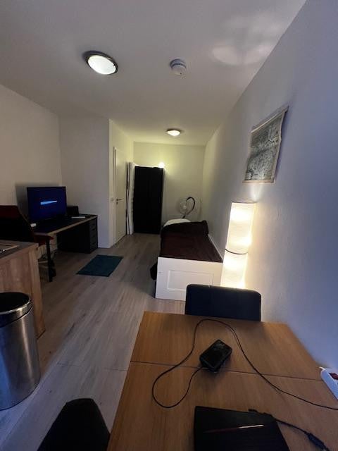De studio heeft een mooie laminaat vloer, aparte toilet en aparte badkamer.