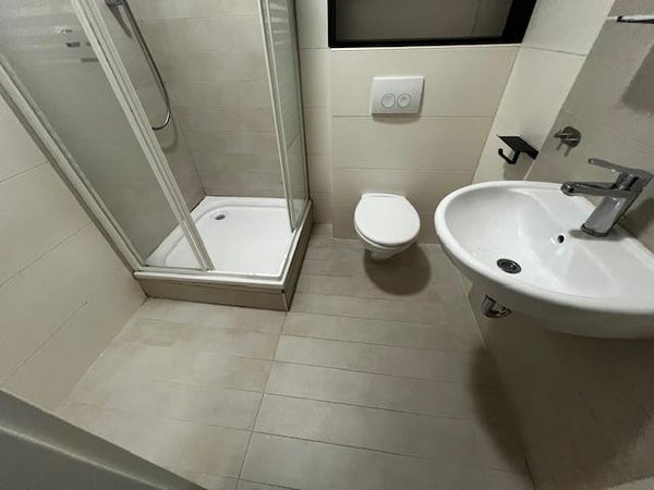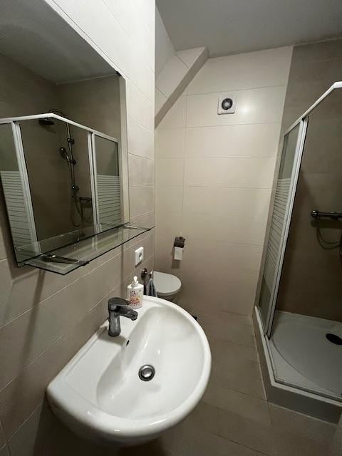 De badkamer en wc zijn voorzien van mooie tegels met een hoge afwerking, voorzien van douche, toilet, wasbak en een aansluiting voor een wasmachine.