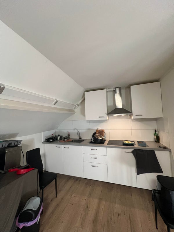 Located in a central location near supermarkets, bus stops, TU/e, Fontys, Haagdijk shopping center, and various amenities.** One room (number 2), on first floor available immediately, equipped with window coverings and fridge/freezer combination. Layout: Ground floor: Via the fixed stairs in the shared entrance/hall you reach the first floor where rooms 1, 2, and 3 are located. Also here is the renovated bathroom, equipped with toilet, sink, shower, and towel radiator. Fixed stairs to the second floor.