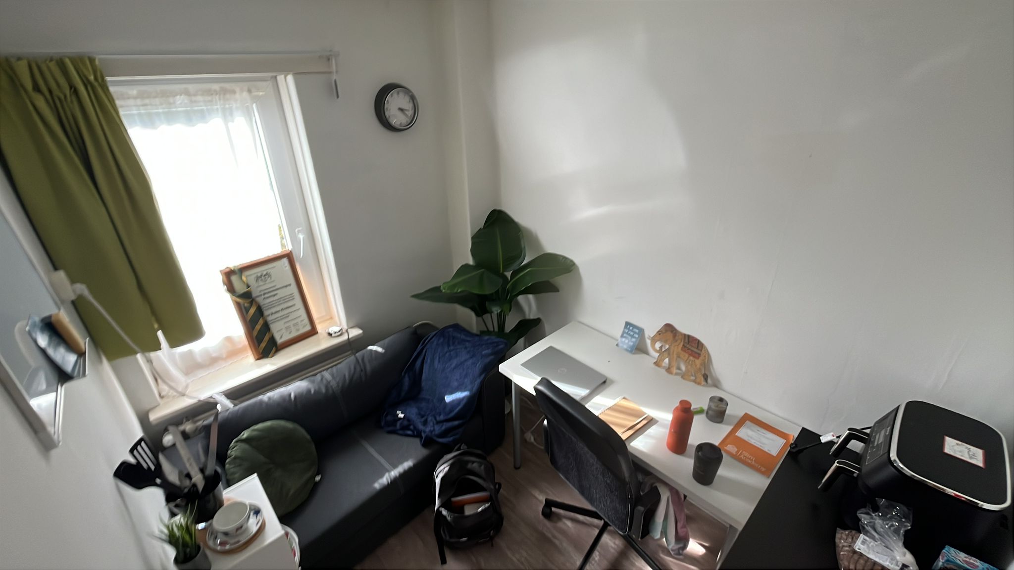 Je krijgt twee kamers van beide ongeveer 5 vierkante meter.