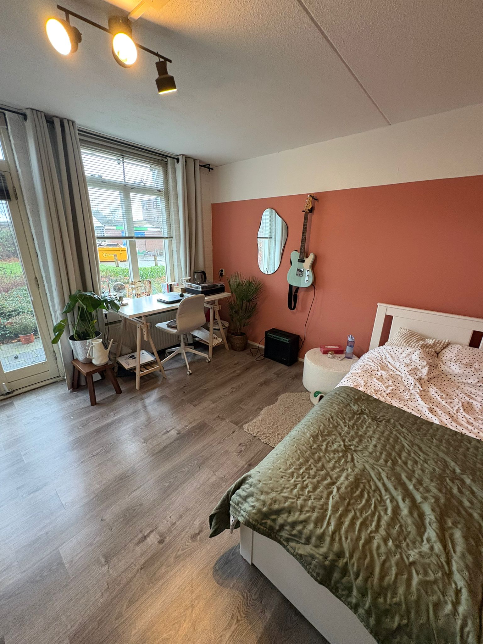 De kamer is 18m2 met een eigen badkamer en toilet, hoe chill! Als kers op de taart heb je ook je eigen tuintje. Ons huis is voorzien van een keuken en gezellige woonkamer, wasmachine, droger, vaatwasser en afsluitbaar fietsenhok.