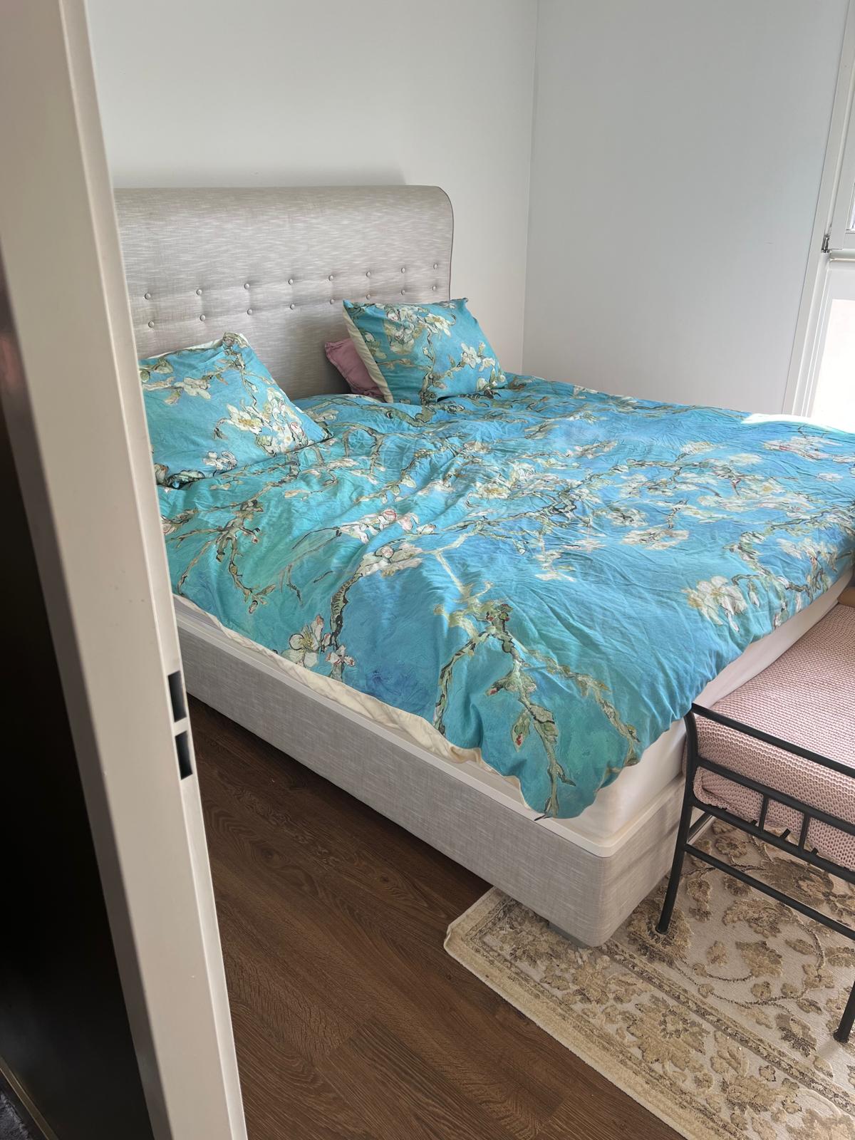 Gemeubileerd: bed, kledingkast, nachtkastjes, spiegel
