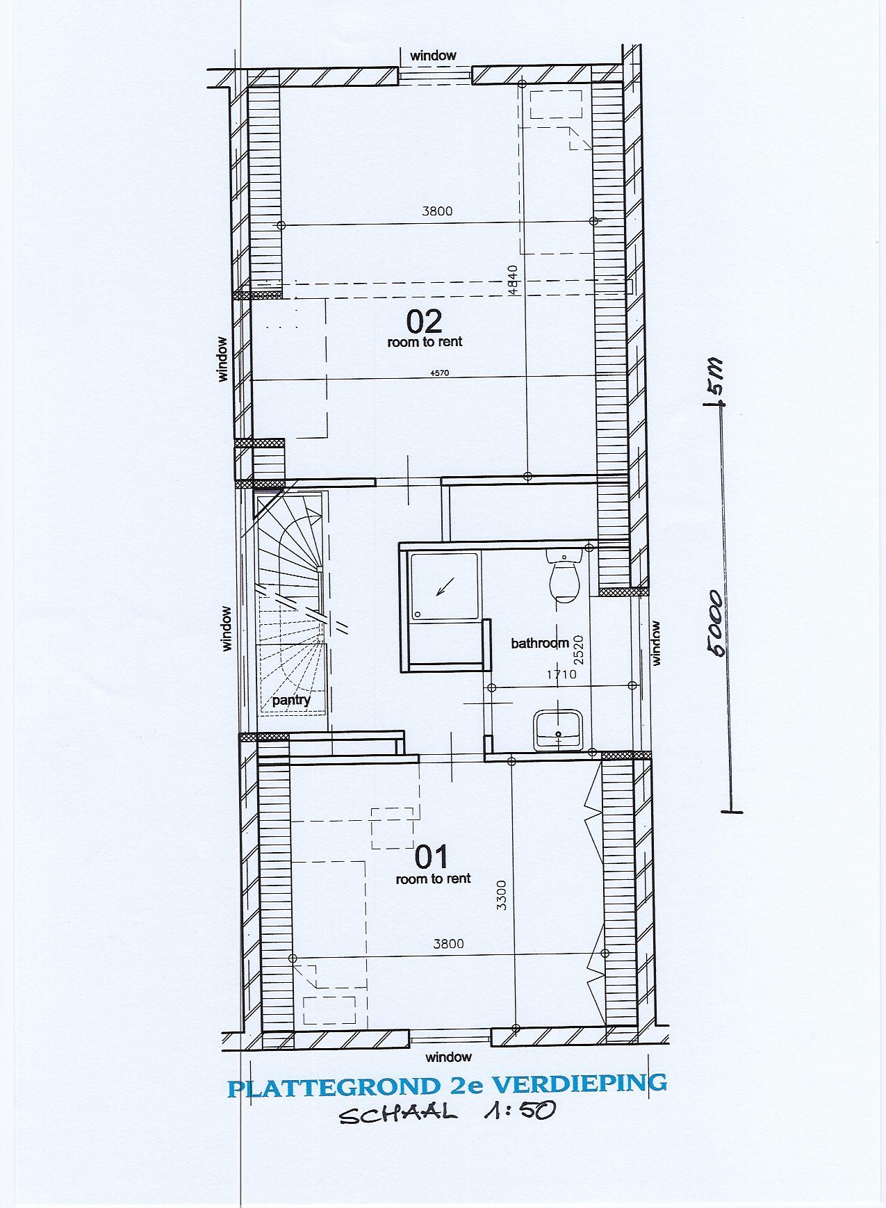 Tweede kamer op zolder al verhuurd. Badkamer, toilet en pantry gedeeld met tweede huurder.