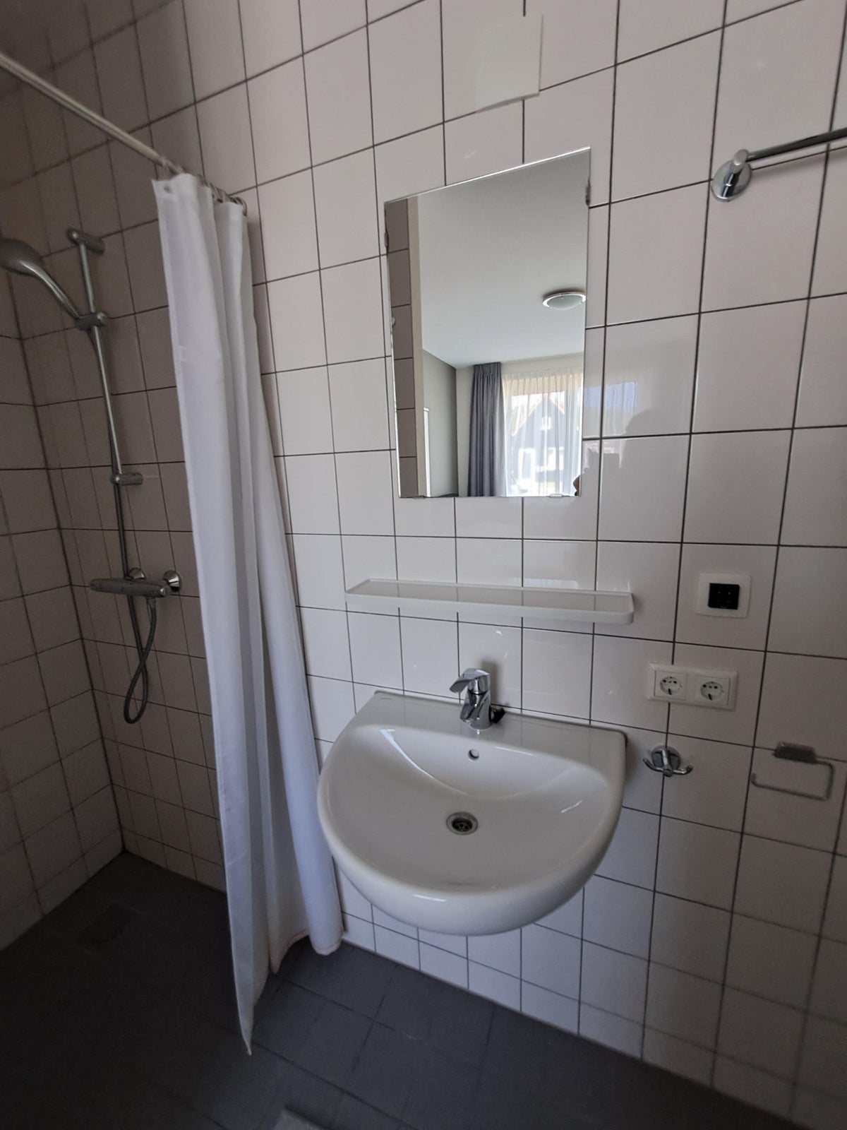 Via de hal, met wasruimte, heeft u toegang tot de slaapkamer en de badkamer. De badkamer is voorzien van een douche en wastafel.