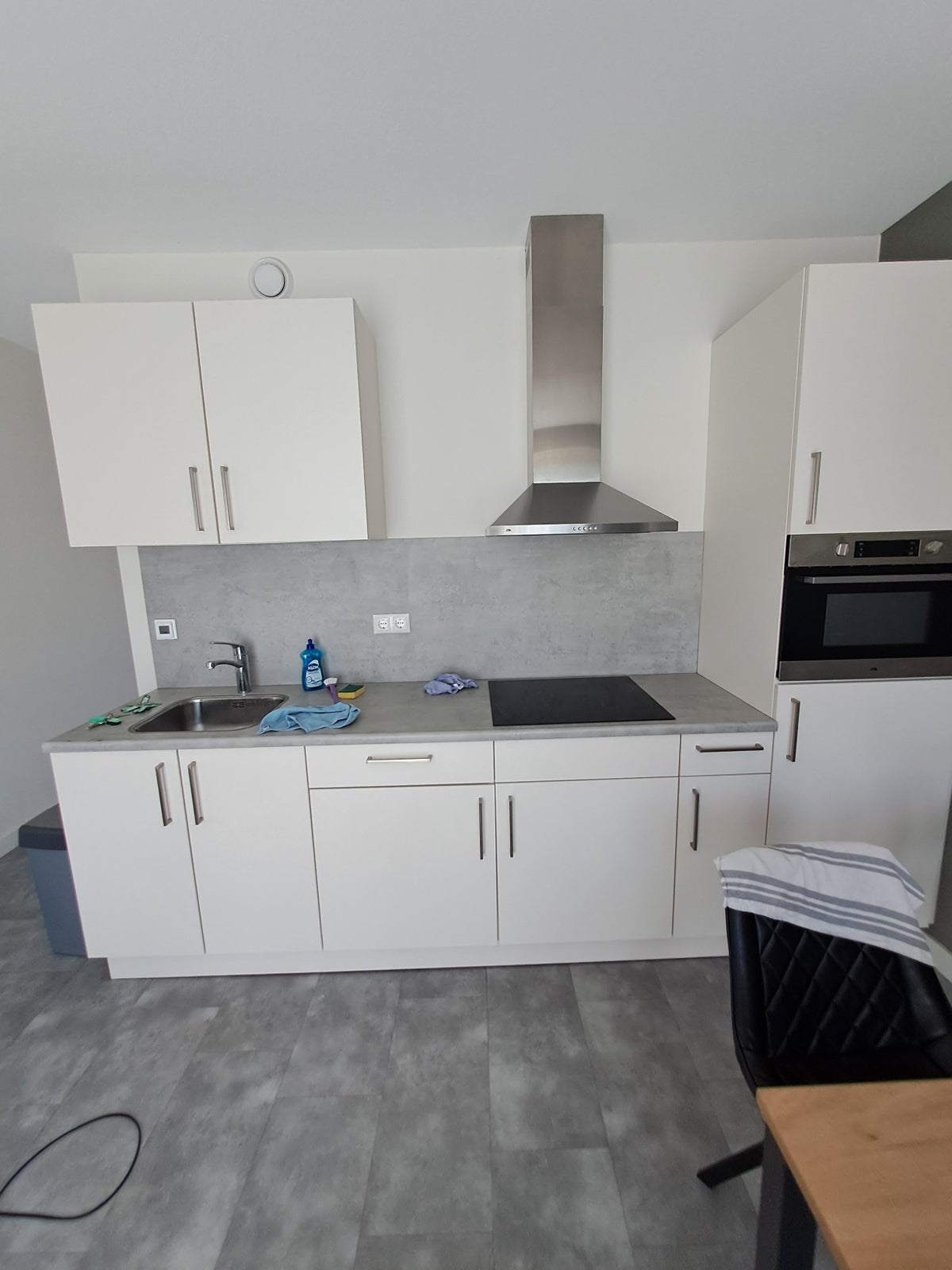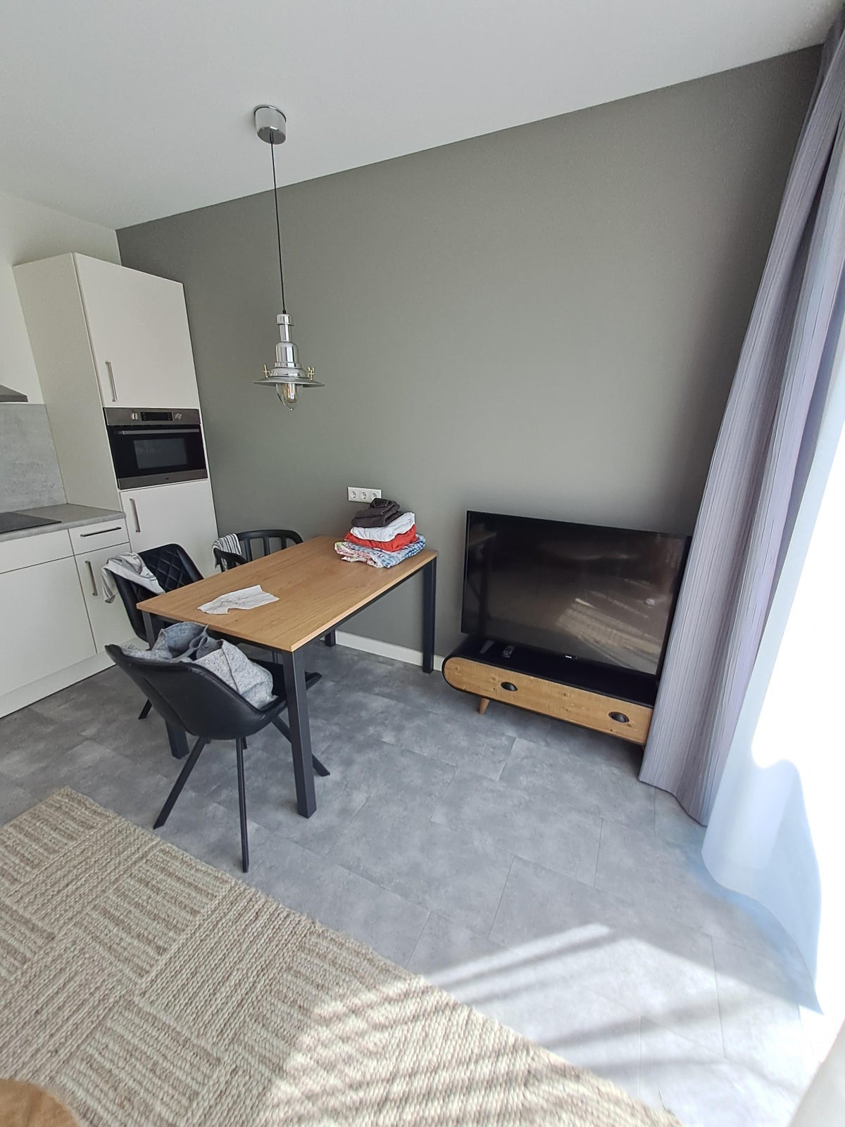 De lichte woonkamer beschikt over een open keuken, uitgerust met onder andere een inductiekookplaat, combi-oven en koelkast. Vanuit de woonkamer heeft u directe toegang tot de zonnige tuin.