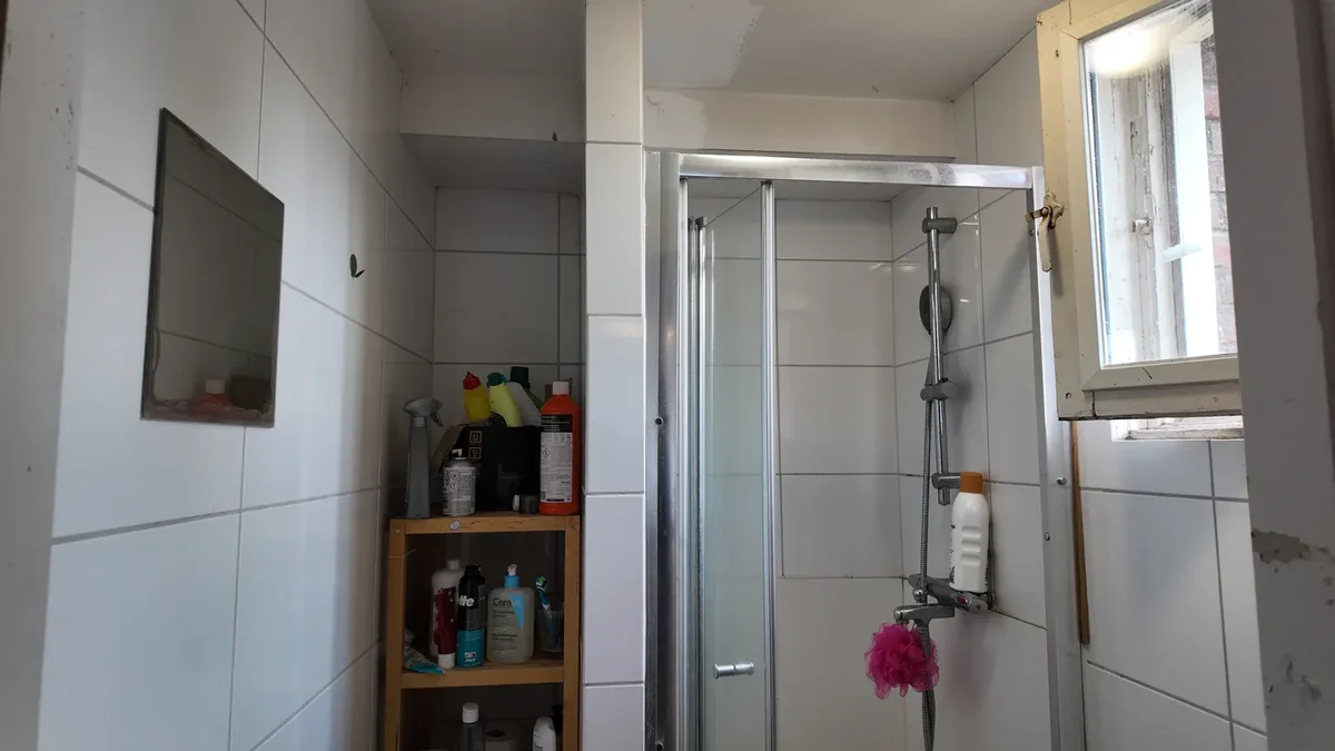 Het is een zeer lichte kamer met uitzicht op Waldeck Bastion in een studentenhuis met een gemeenschappelijke keuken, toilet en badkamer met douche en wastafel..