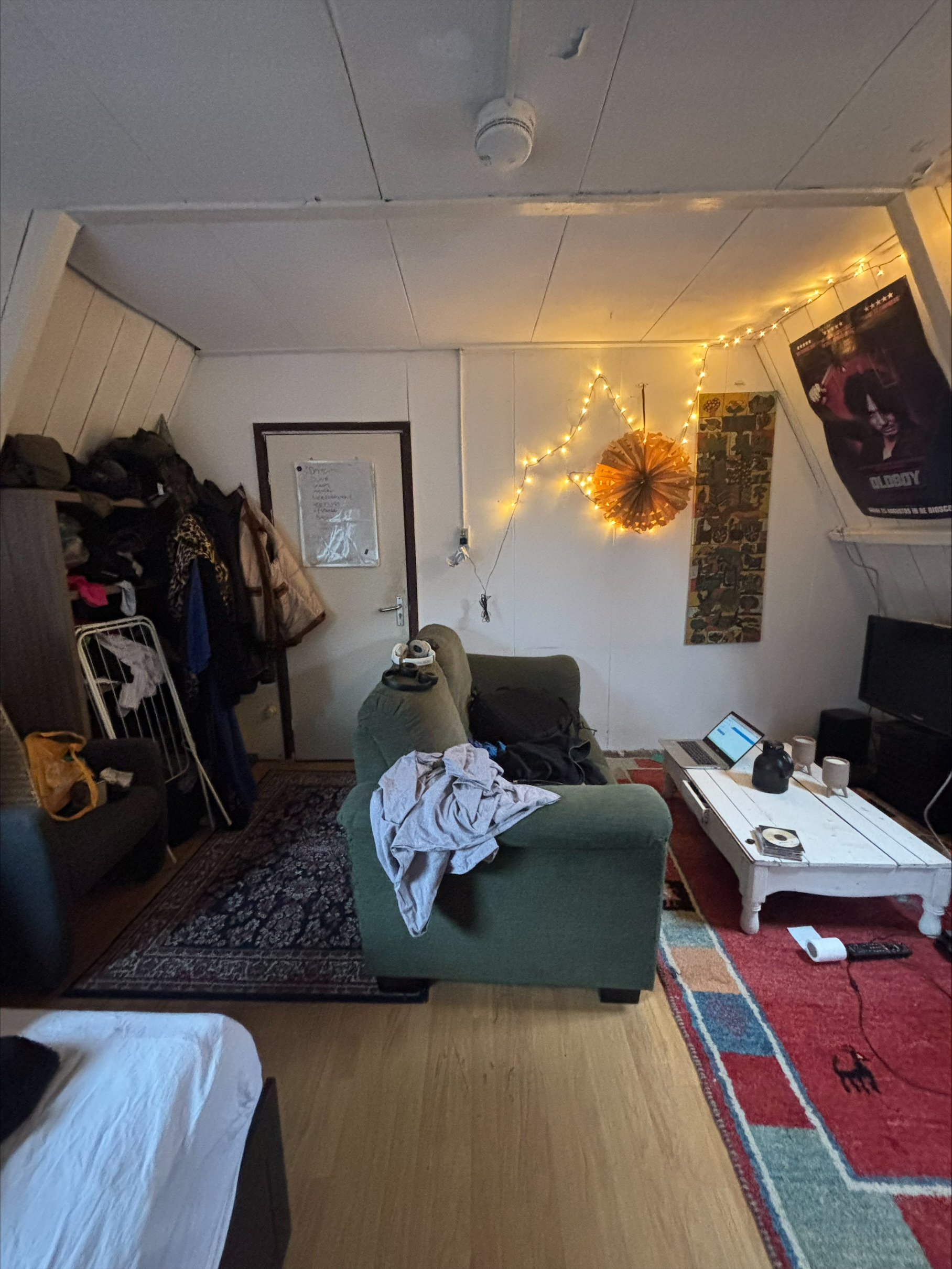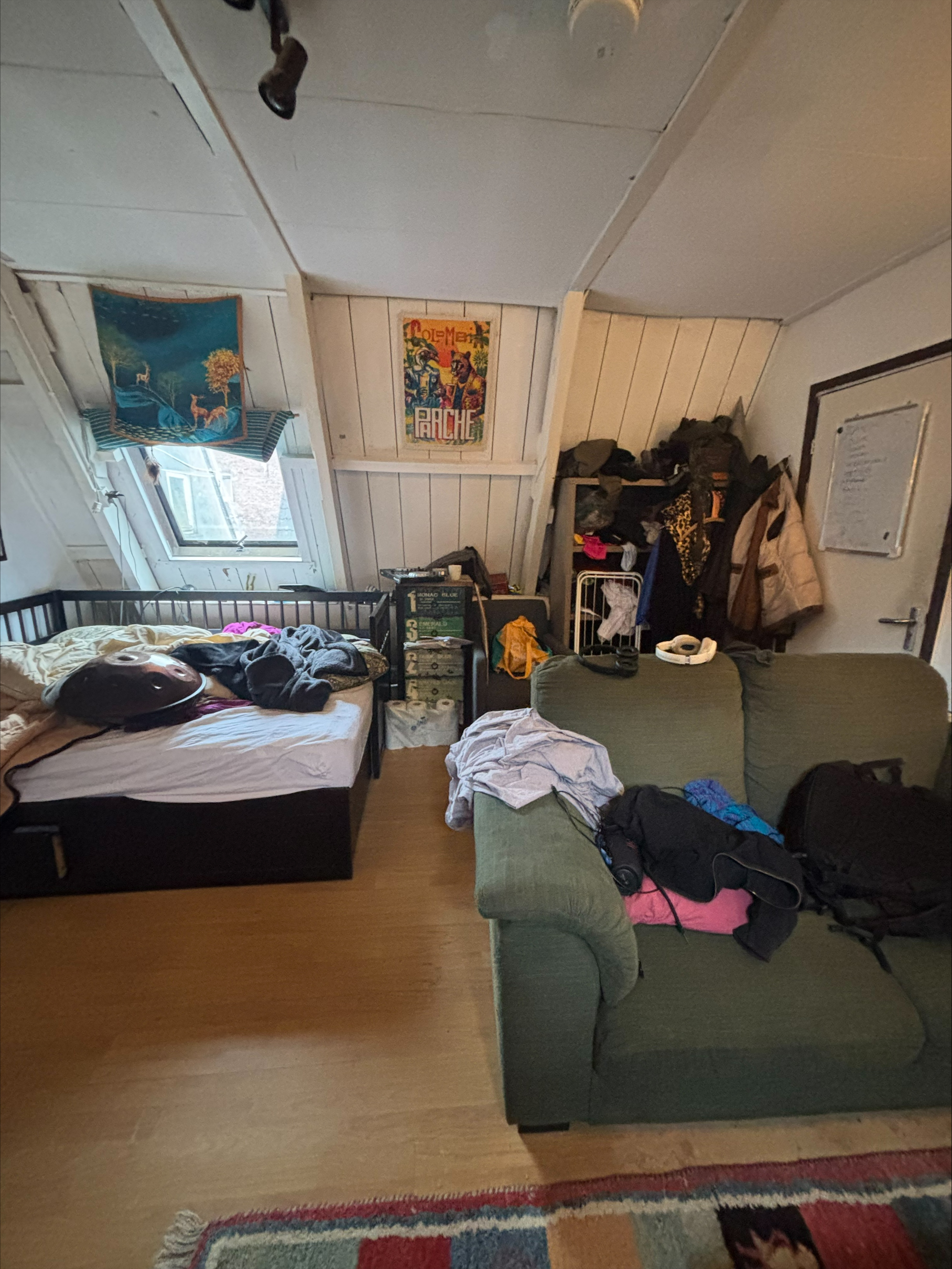 De kamer is licht en praktisch ingedeeld en biedt voldoende ruimte voor een comfortabel woon- en slaapgedeelte. De keuken en badkamer worden gedeeld met de overige huisgenoten.