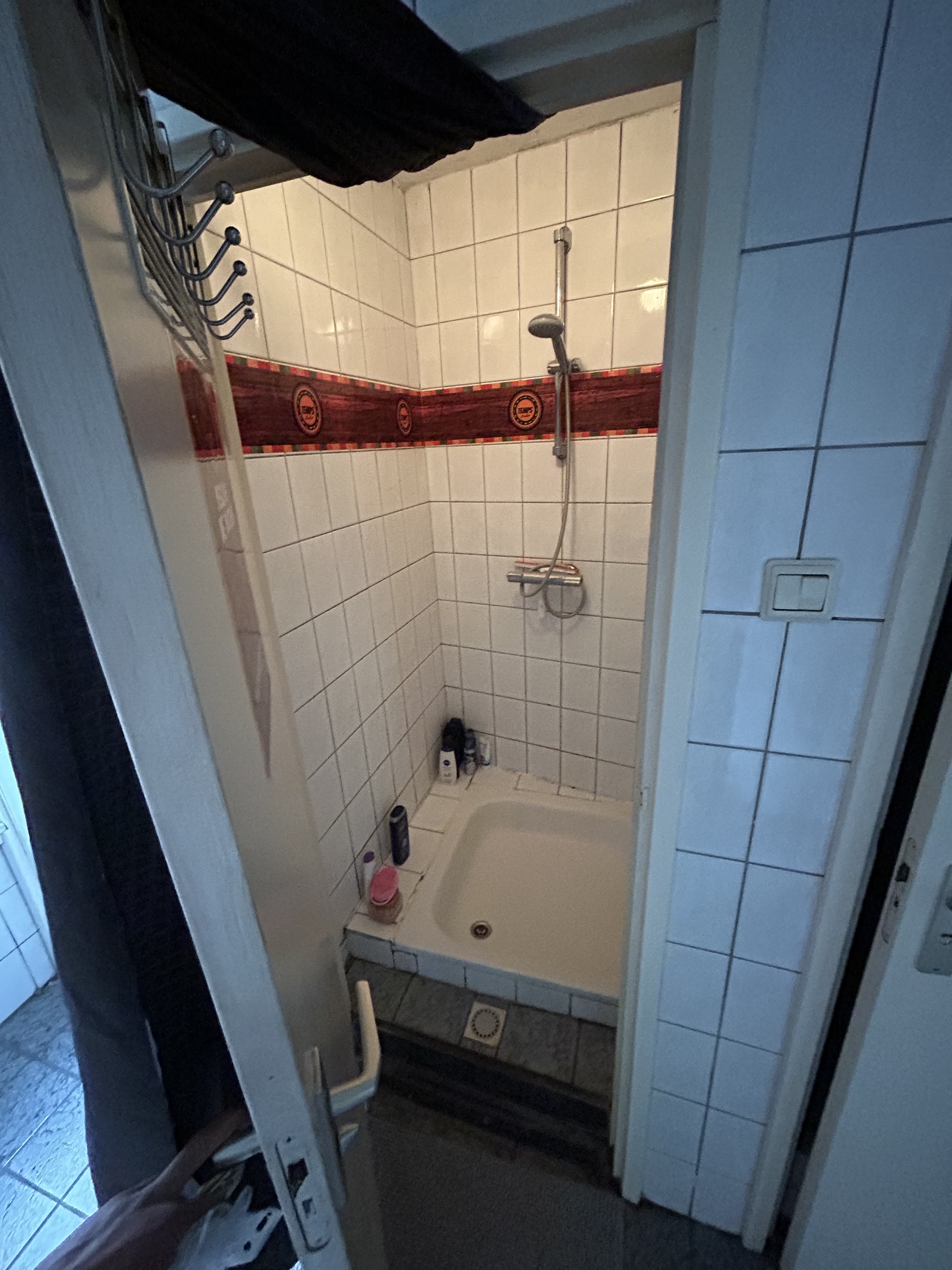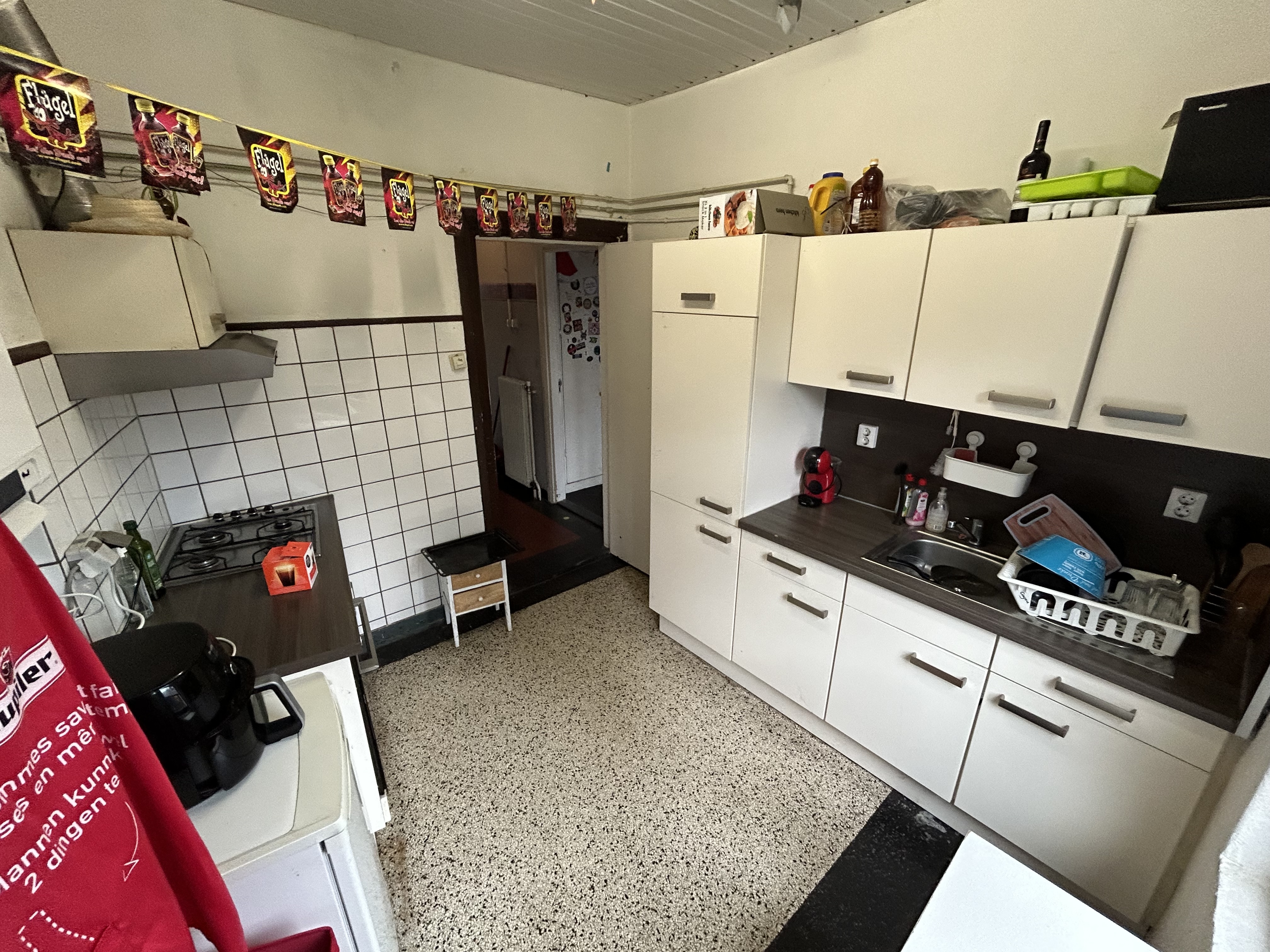 De wasmachine wordt gedeeld met de andere bewoners.