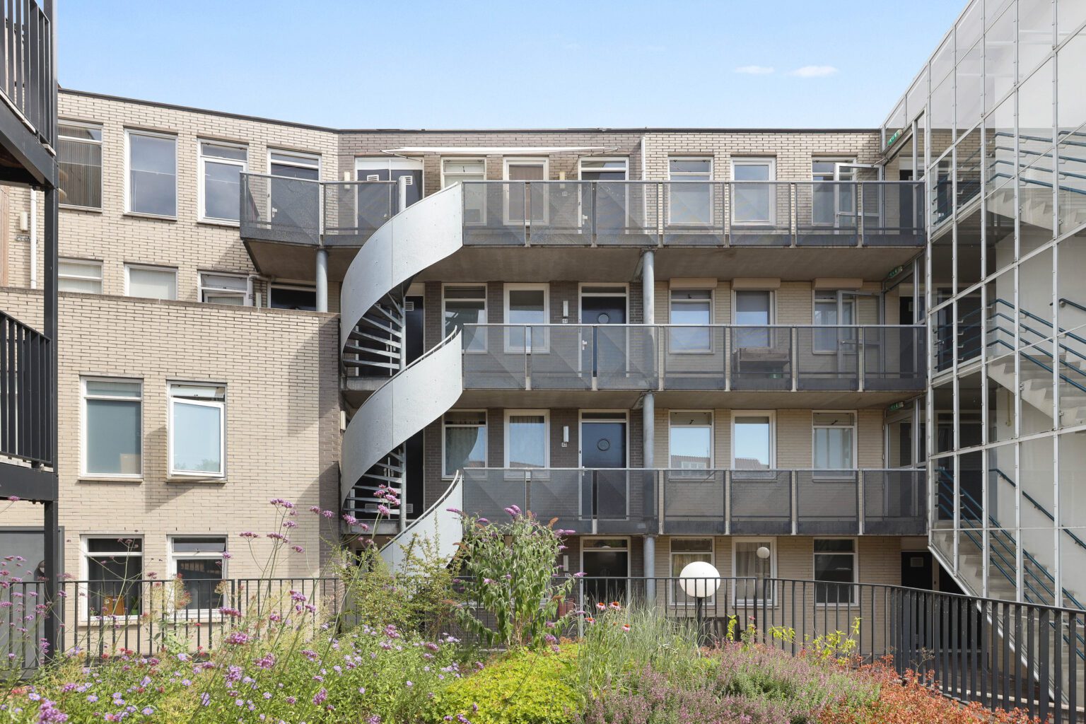 Het appartement is gelegen op de vierde etage. In 2021 is de keuken volledig vernieuwd en is voorzien van moderne inbouwapparatuur zoals een koel-/vriescombinatie, kookplaat met afzuigkap, combi-oven/magnetron en een vaatwasser. De woning beschikt over een cv-installatie die voor aangename warmte zorgt. De indeling omvat een lichte woonkamer met toegang tot het balkon, een ruime slaapkamer en een aparte berging voor extra opslagruimte.