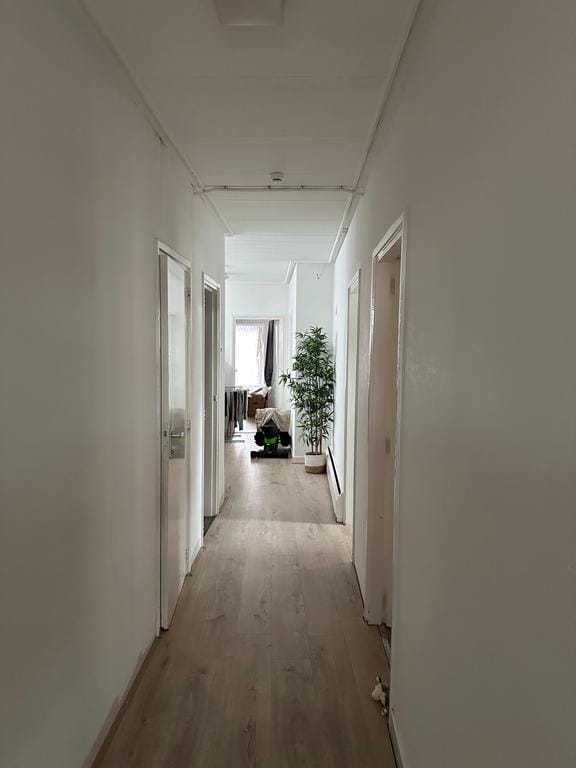 Entree/ hal, ruime woonkamer met toegang tot het balkon.