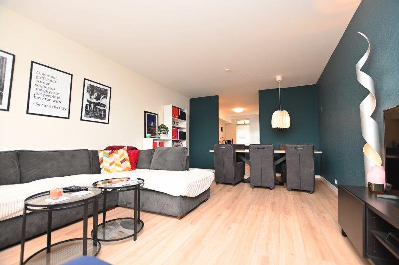 De luxe keuken is voorzien van . een inductie kookplaat, vaatwasser, koelkast en vriezer. De woonkamer is zeer ruim en door de grote raampartij komt er veel licht binnen. Via de woonkamer is tevens het balkon te bereiken.