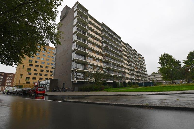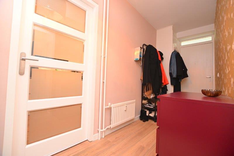 Via de gezamenlijke ingang kunt u met de lift of trap naar de zesde verdieping waar het desbetreffende appartement zich bevindt. Via de galerij heeft u een uitzicht over de stad. Bij binnenkomst in het appartement komen we in de ruime hal waar aan de rechterzijde de woonkamer met open keuken zich bevindt.