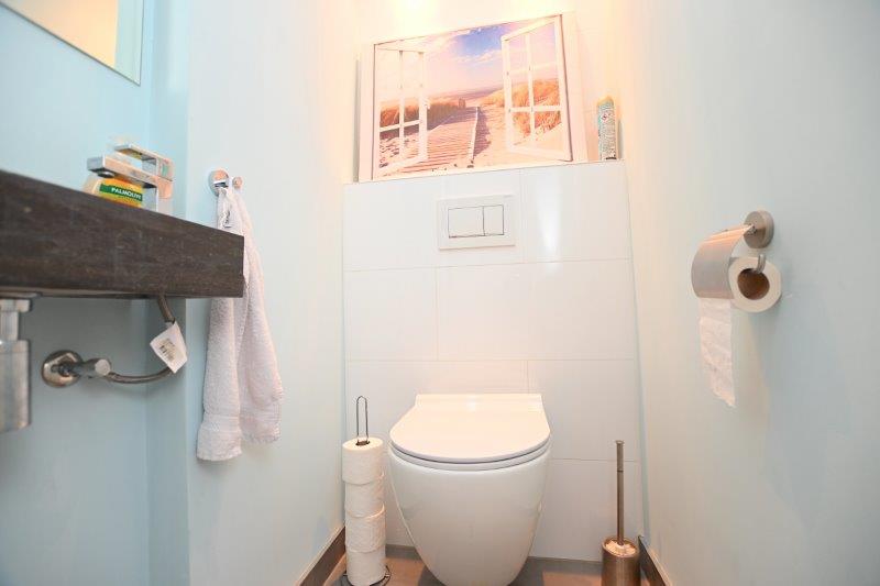 De moderne badkamer is voorzien van dubbele wastafel, spiegel en inloopdouche. Het toilet is gescheiden van de badkamer. Op de begane grond is tevens een berging aanwezig.