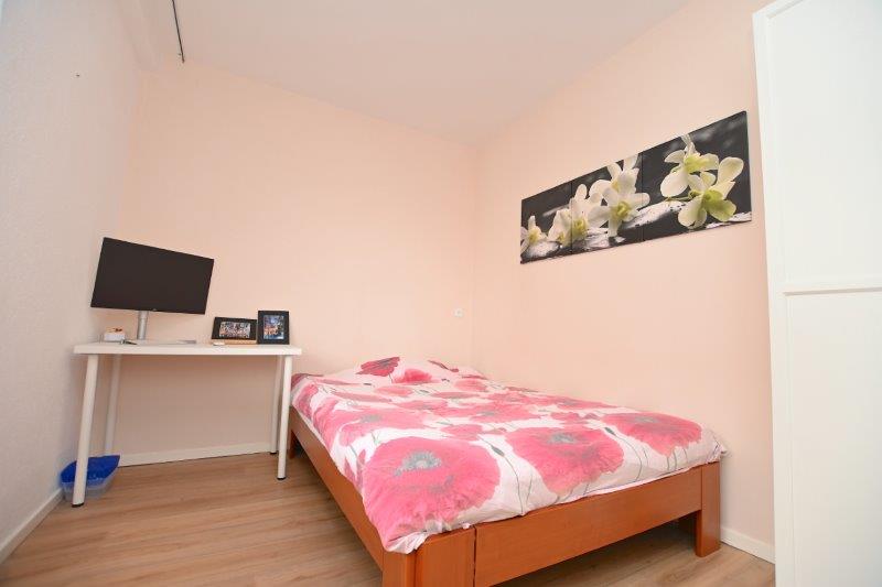 De kamer zelf is te bereiken via de hal, hier is ruimte voor een tweepersoonsbed en een kleidingkast.