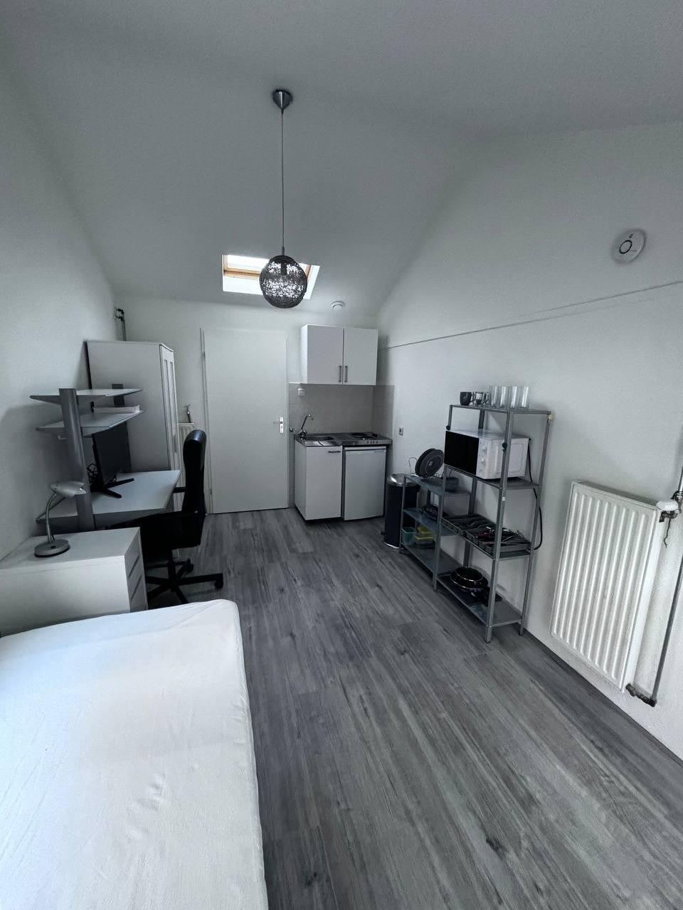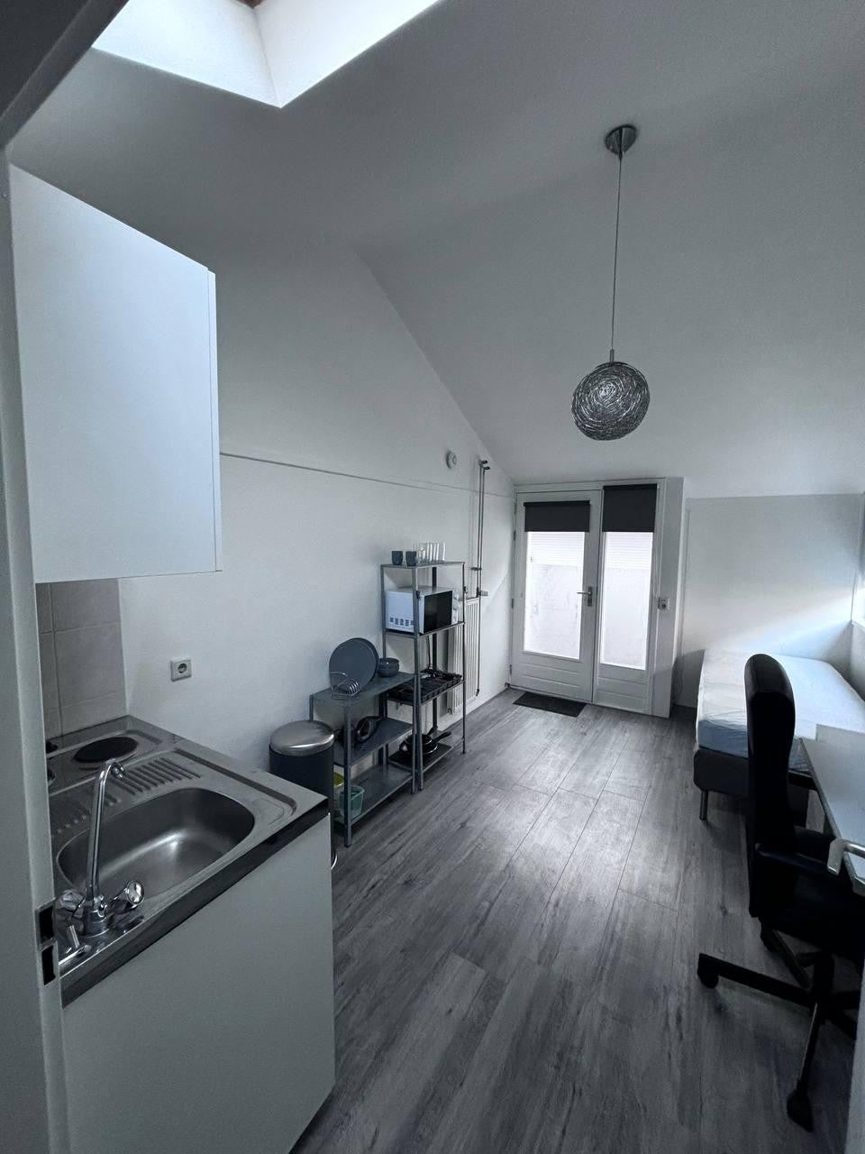 Gemeubileerd studio-appartement, geschikt voor 1 persoon, met eigen keuken en badkamer.