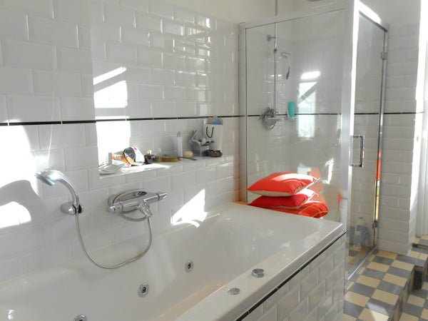 De badkamer is uitgerust met zowel een bad als een aparte douche, zodat u altijd kunt kiezen voor een snelle verfrissing of een ontspannend badmoment. Een ideale combinatie voor comfort en gemak in uw dagelijks leven.