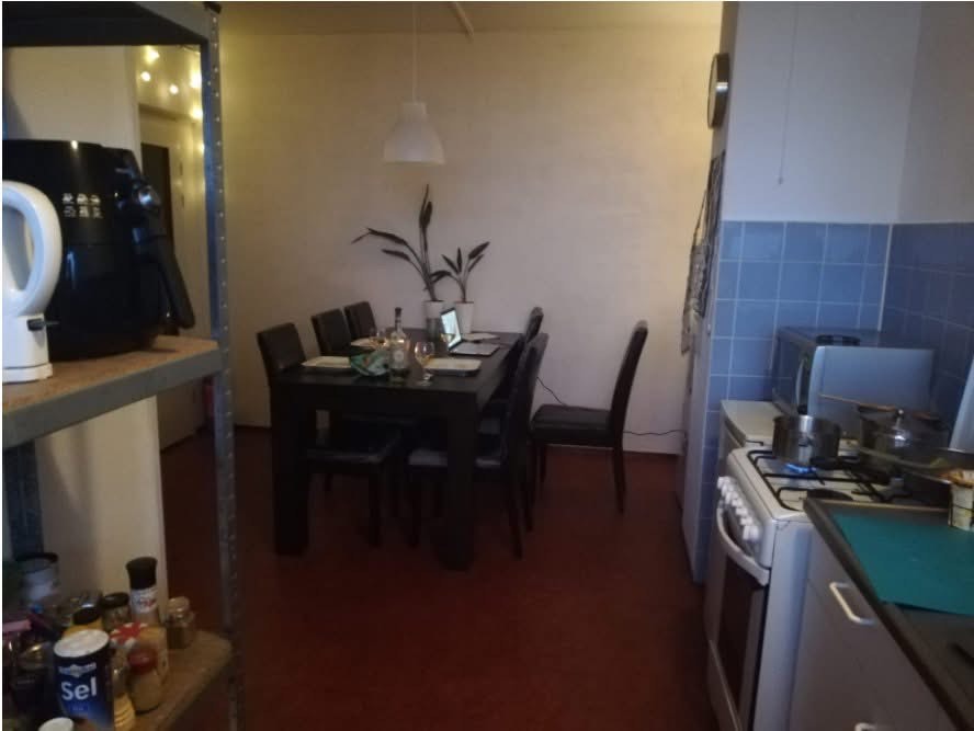 De kamer komt per 22 maart vrij. De kamer is 18m2 en gaat ongeveer 440 euro kosten. De kosten zijn inclusief gas, water, licht en internet/tv. Verder hebben we een losse badkamer en wc en een keuken met eettafel waar we met z'n allen kunnen zitten.