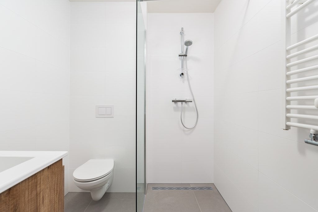 • Voorzieningen badkamer: inloopdouche, toilet en wastafel met meubel en spiegel