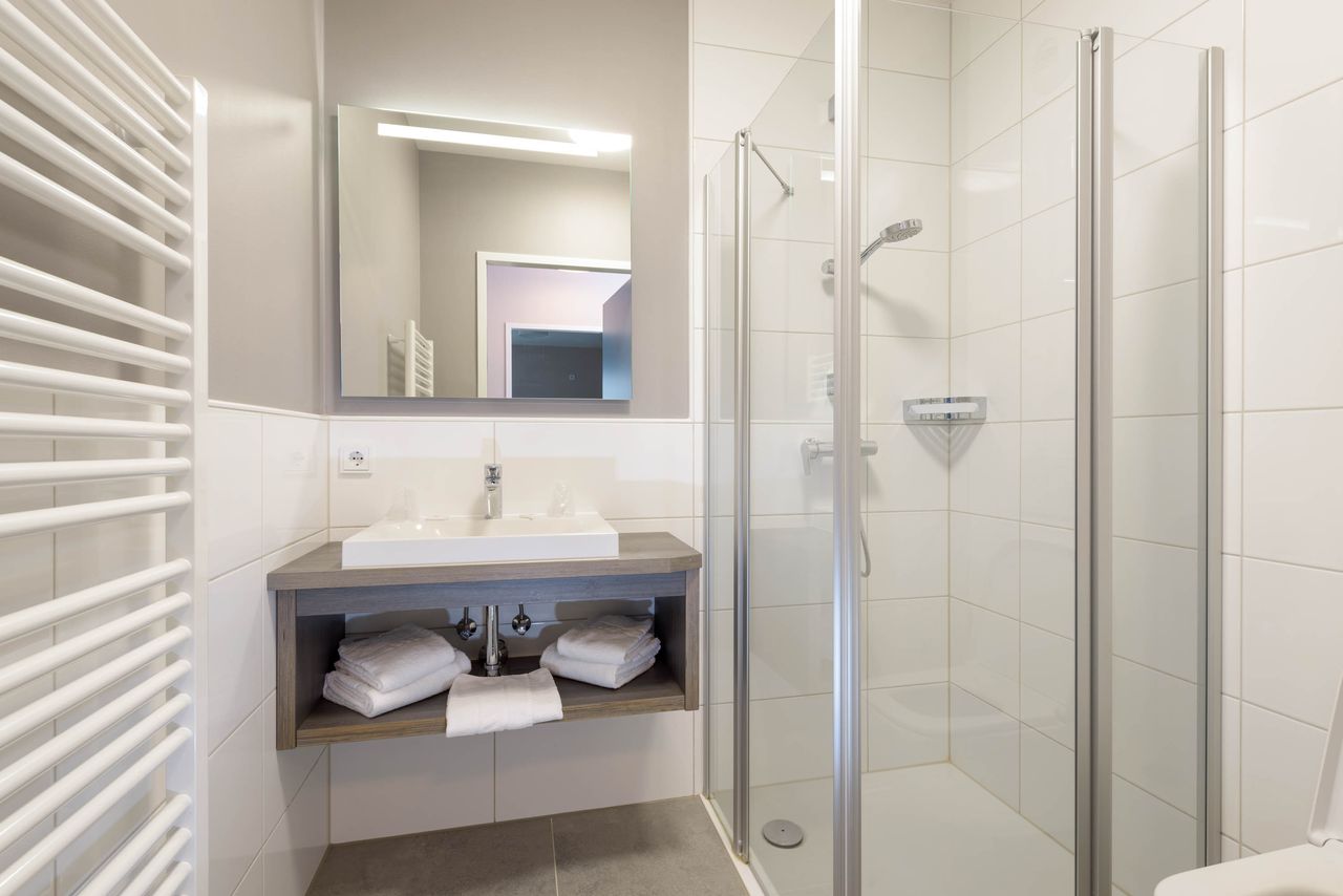 De solide bakstenen constructie, het speciaal ontwikkelde energieconcept, de verhoogde geluidsisolatie, het hoogwaardige meubilair dat door de timmerman is geïnstalleerd, een boxspringbed, de professionele keukens met granieten werkbladen en Bauhaus-bouwtechnologie op het hoogste niveau dragen bij aan een absoluut comfortabele sfeer.