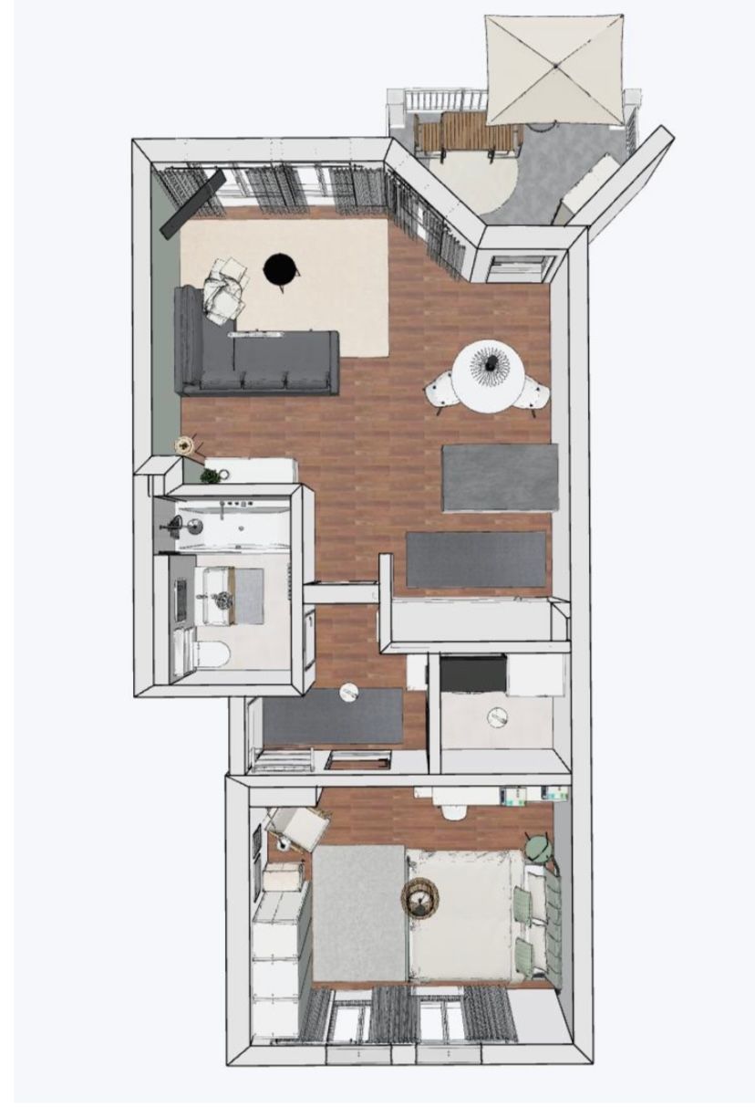 Deze wooneenheid heeft een oppervlakte van ca. 53 vierkante meter. Na een grondige renovatie en opknapbeurt, nieuw meubilair en liefdevol geselecteerde apparatuur met decoratieve elementen, is het klaar voor de eerste verhuur.