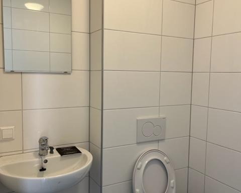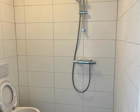 badkamer met WC en douche . studio is gasvrij en het pand heeft zonnepanelen