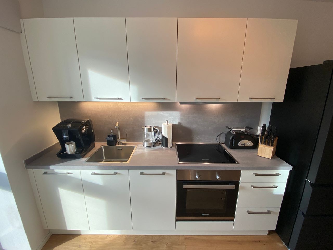 - Open keuken in de woonkamer, volledig uitgerust met vaatwasser, koel/vriescombinatie, inductiekookplaat, koffiezetapparaat, bestek, servies, handdoeken, schoonmaakspullen etc.